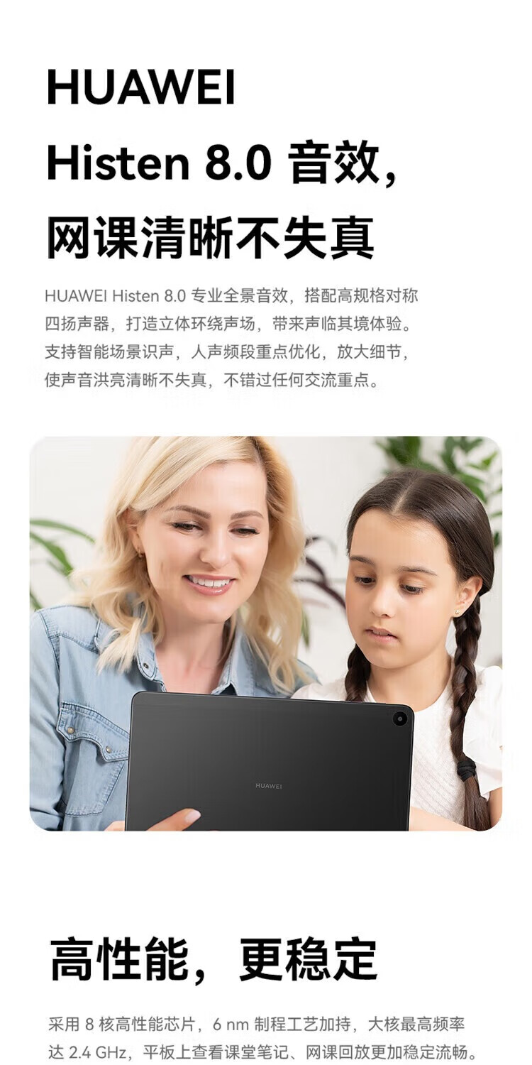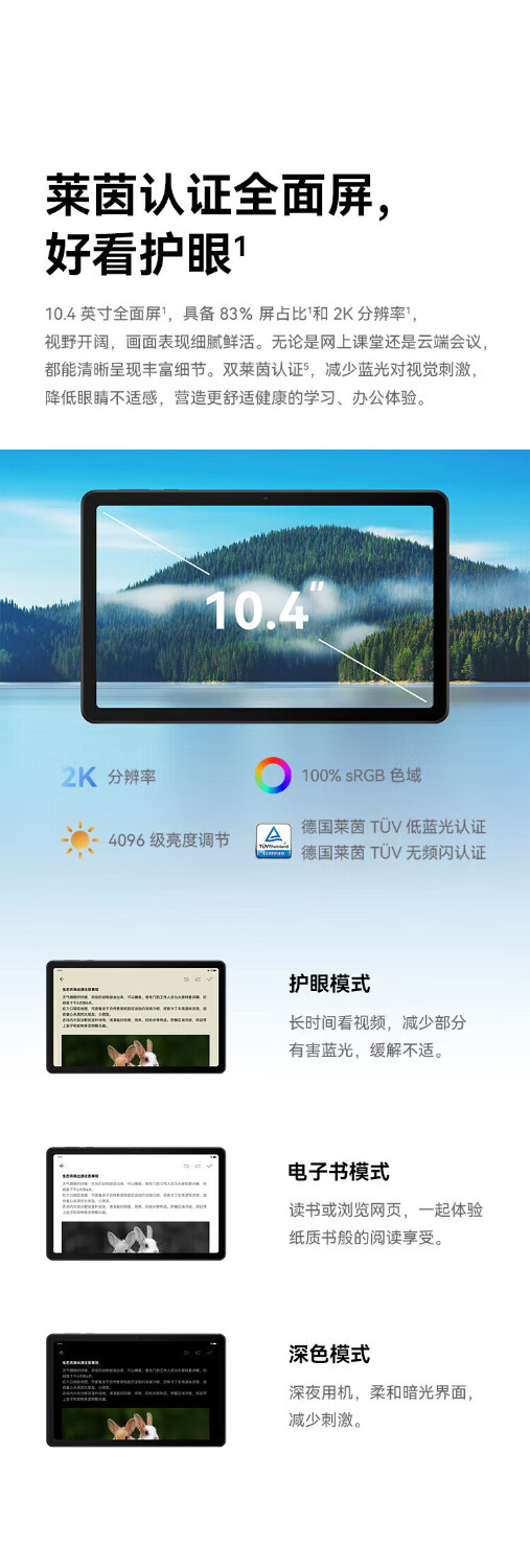 HUAWEI华为平板擎云C5e 10.4英寸2K护眼屏全新平板电脑全网通商务办公学习游戏鸿蒙平板ipad 曜石黑:WiFi版