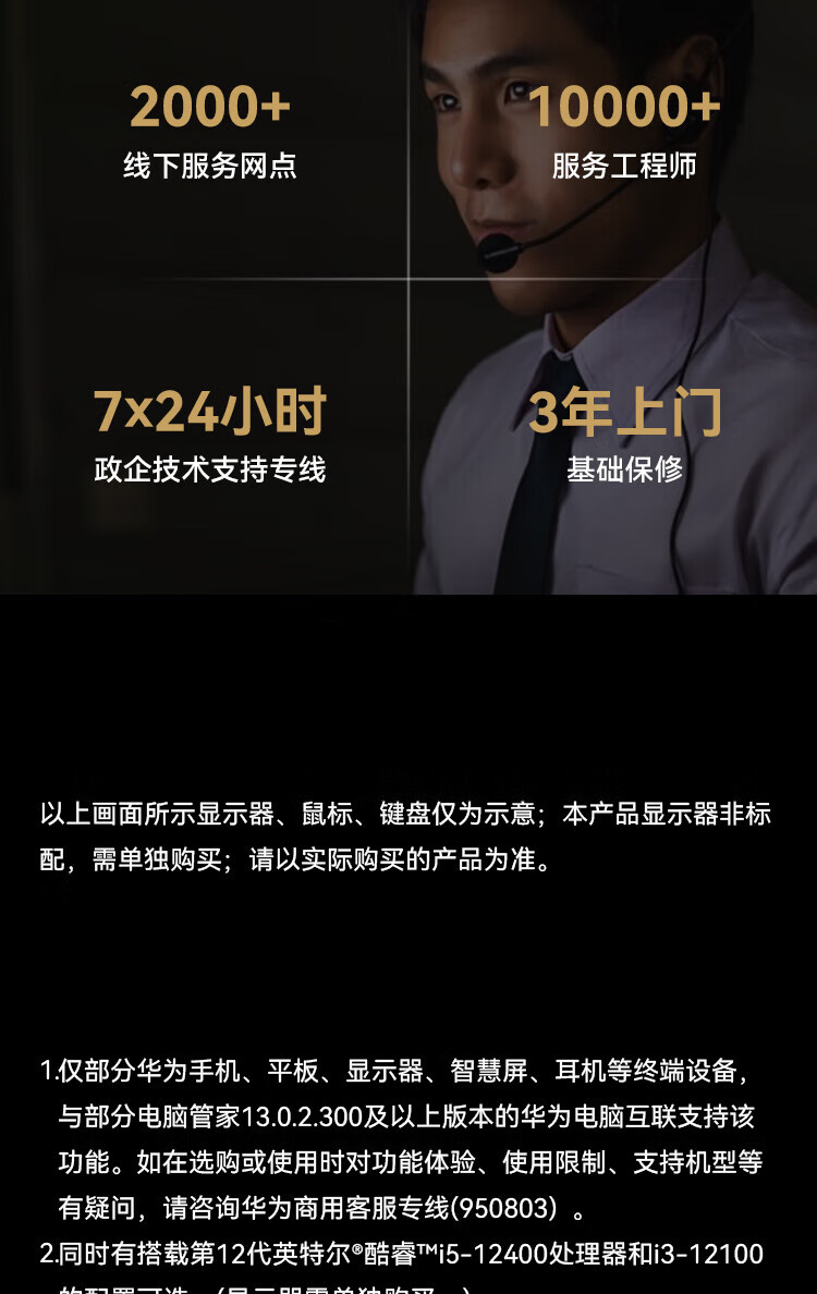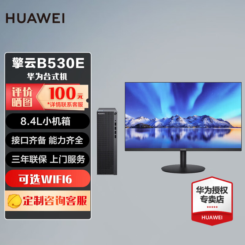 HUAWEI华为台式机电脑擎云 B530E 8L主机商用办公 商用办公 小机箱B530E 单主机 i3 8G 256G