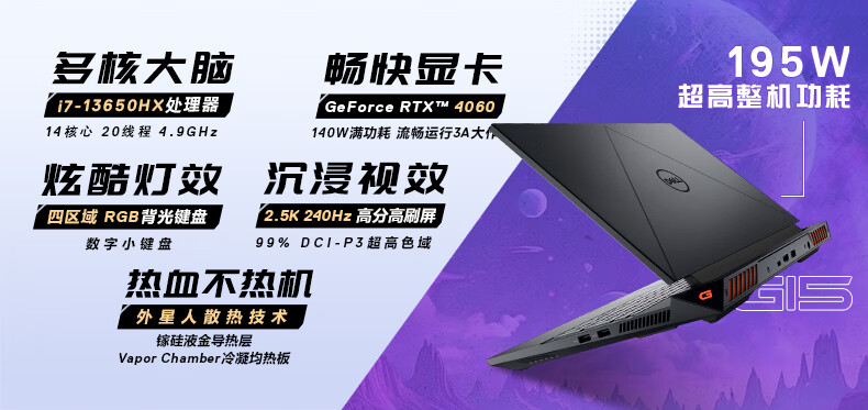 戴尔(DELL)游匣G15游戏本笔记本电脑15.6英寸电竞本(14核酷睿i7HX 16G 1TB RTX4060