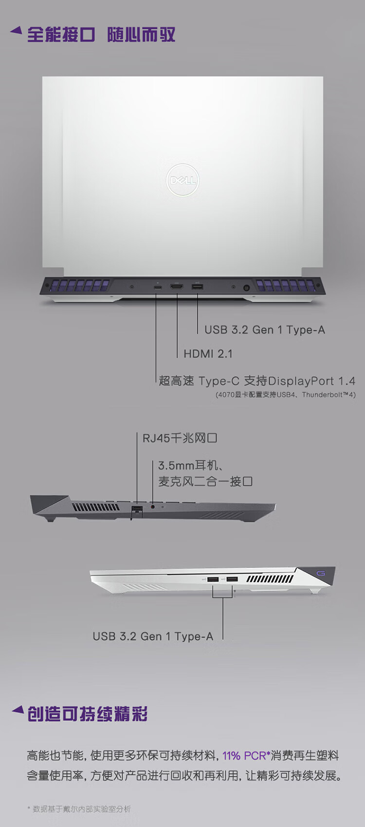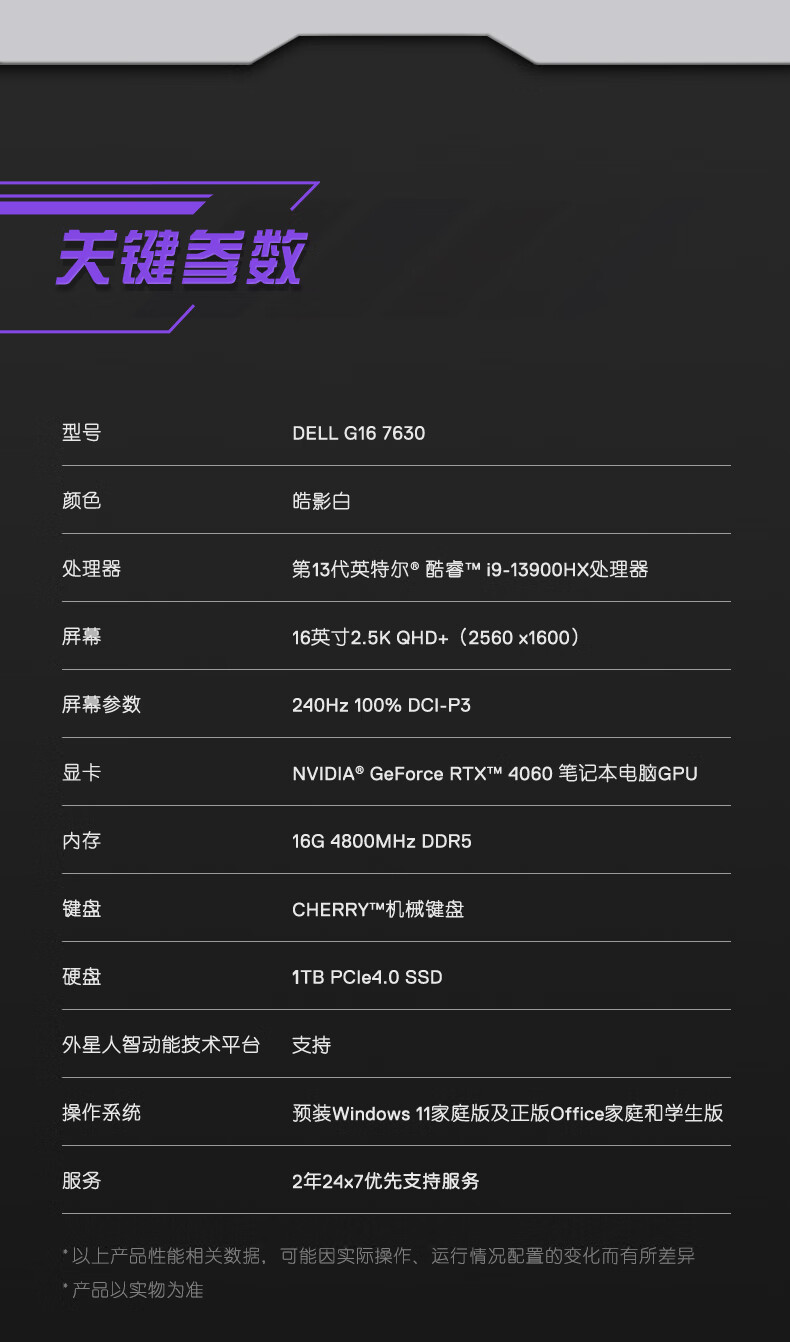 戴尔(DELL)游匣G16 游戏本笔记本电脑16英寸电竞本(24核酷睿i9HX 16G 1TB RTX4060 2.5K
