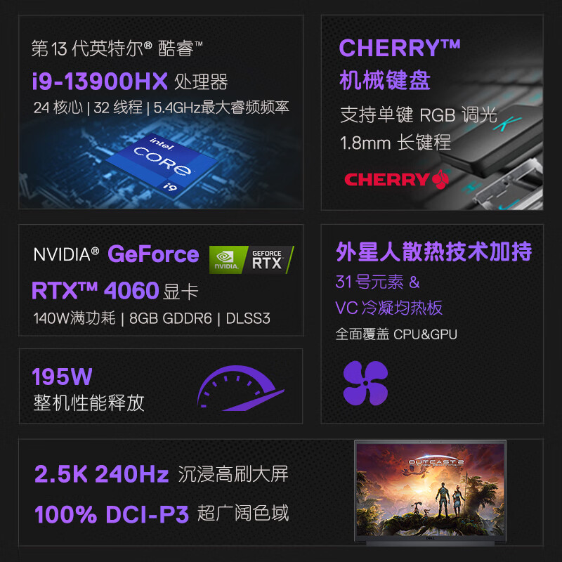 i9HX RTX4070 32G 1T 2.5K 240Hz