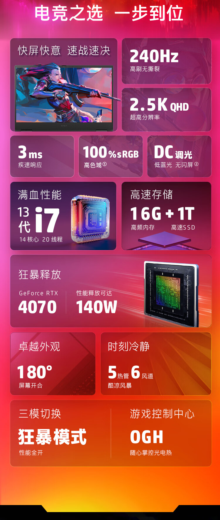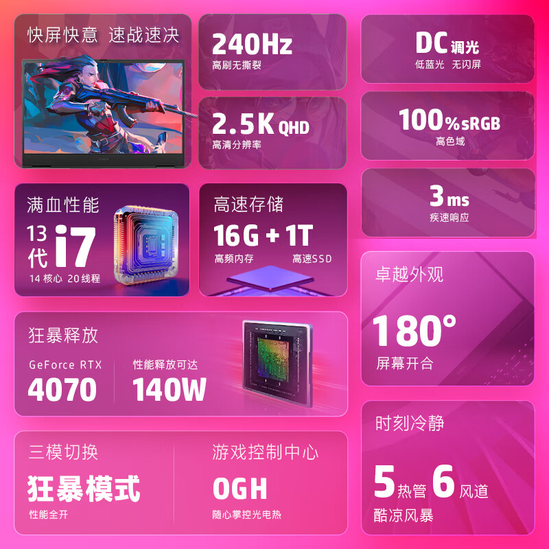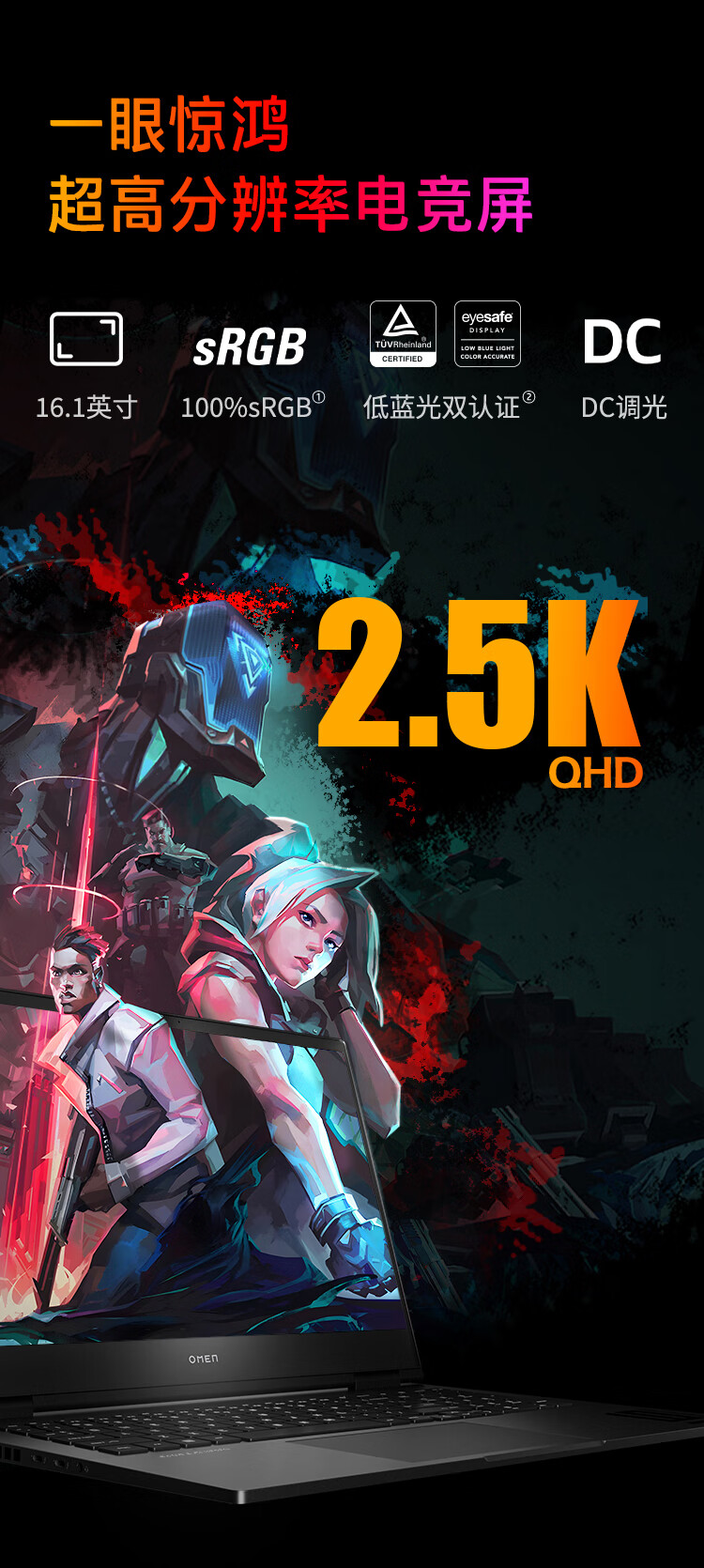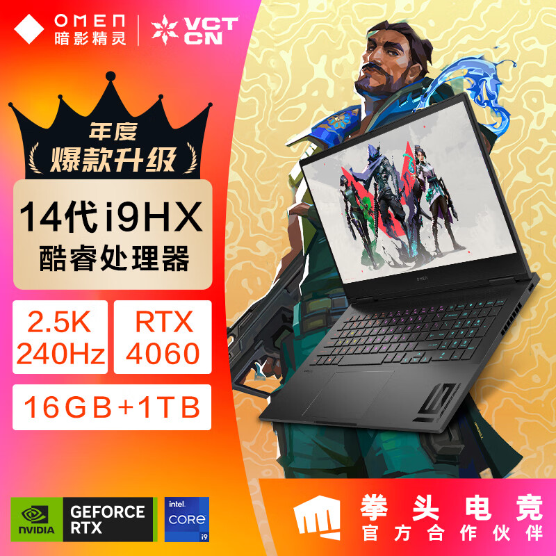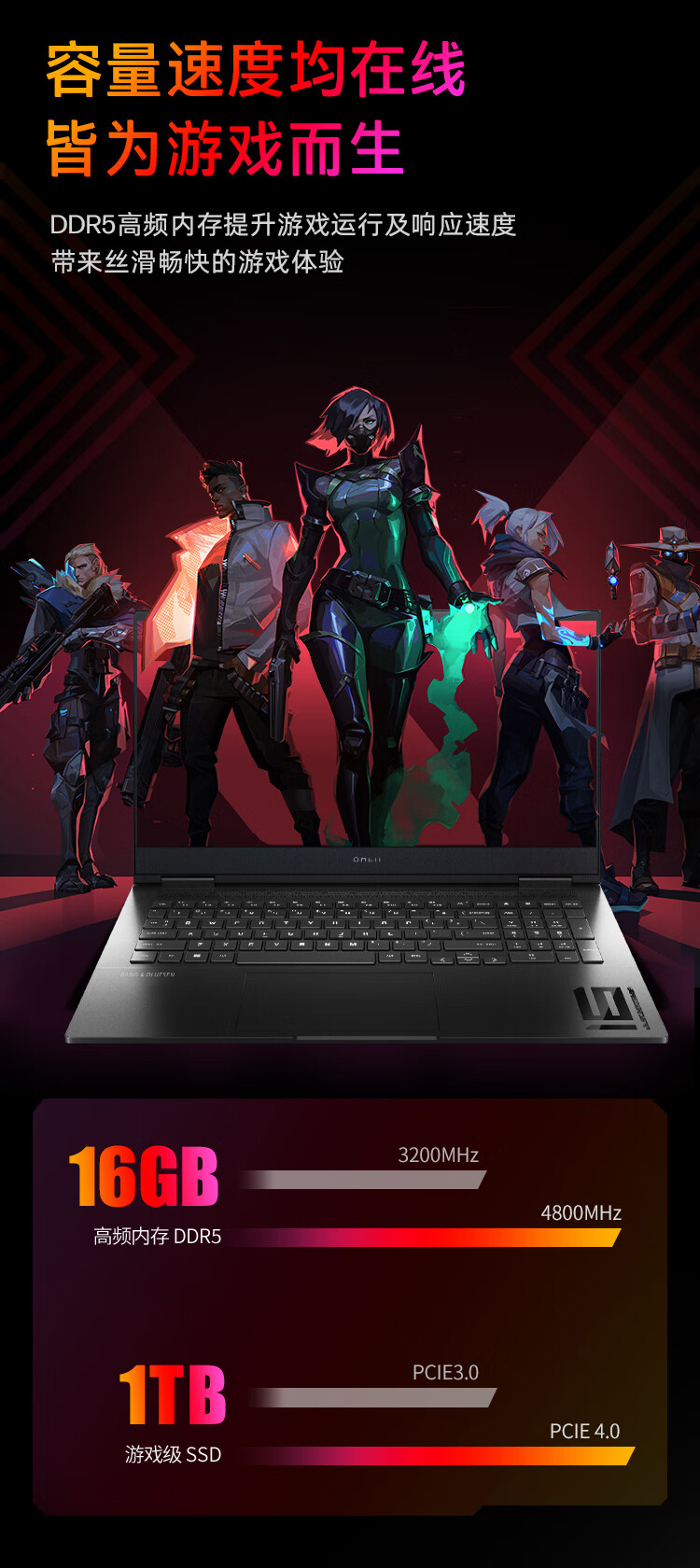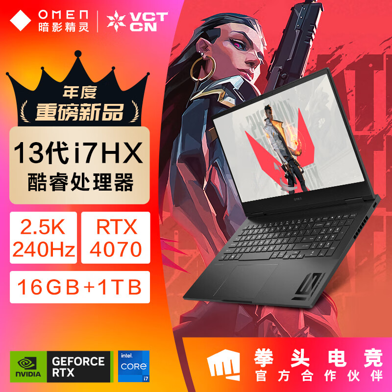 惠普(HP)暗影精灵10 16.1英寸游戏本 笔记本电脑(英特尔酷睿i7-13650HX RTX4070 16G 1TBSSD QHD