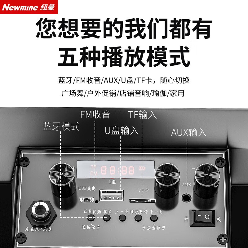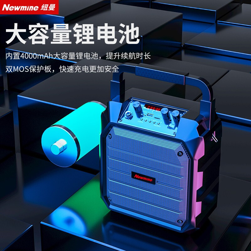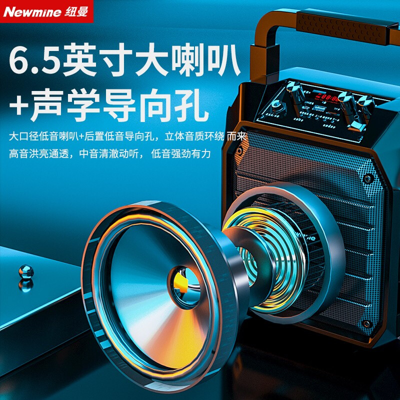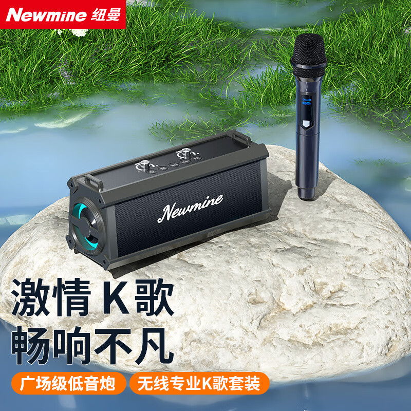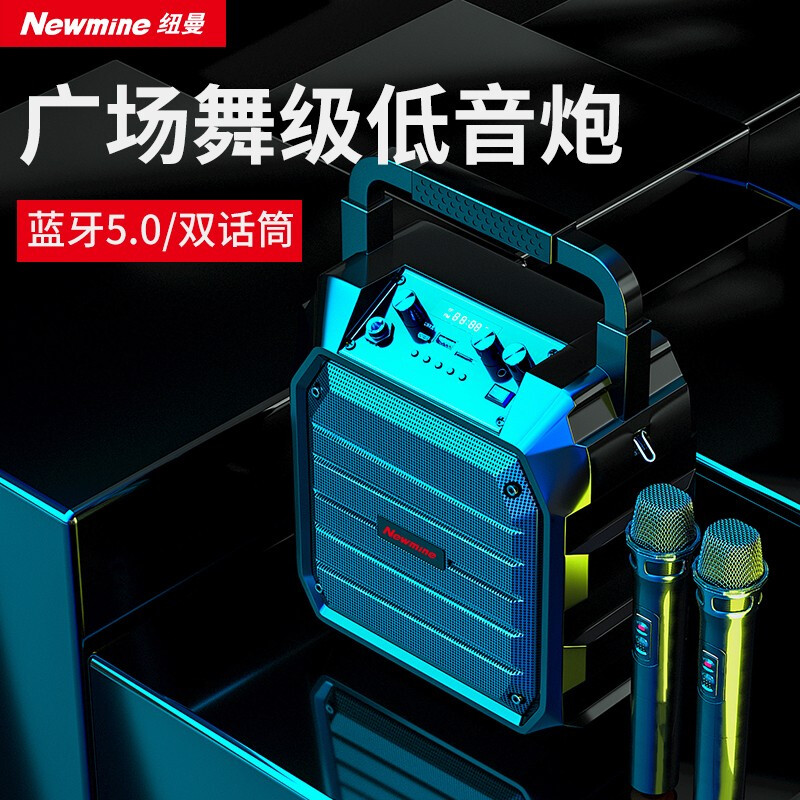 纽曼k98无线蓝牙音箱户外大音量广场舞音响小型家用收音机手提便携式带麦克风地摊摆摊喇叭双麦版
