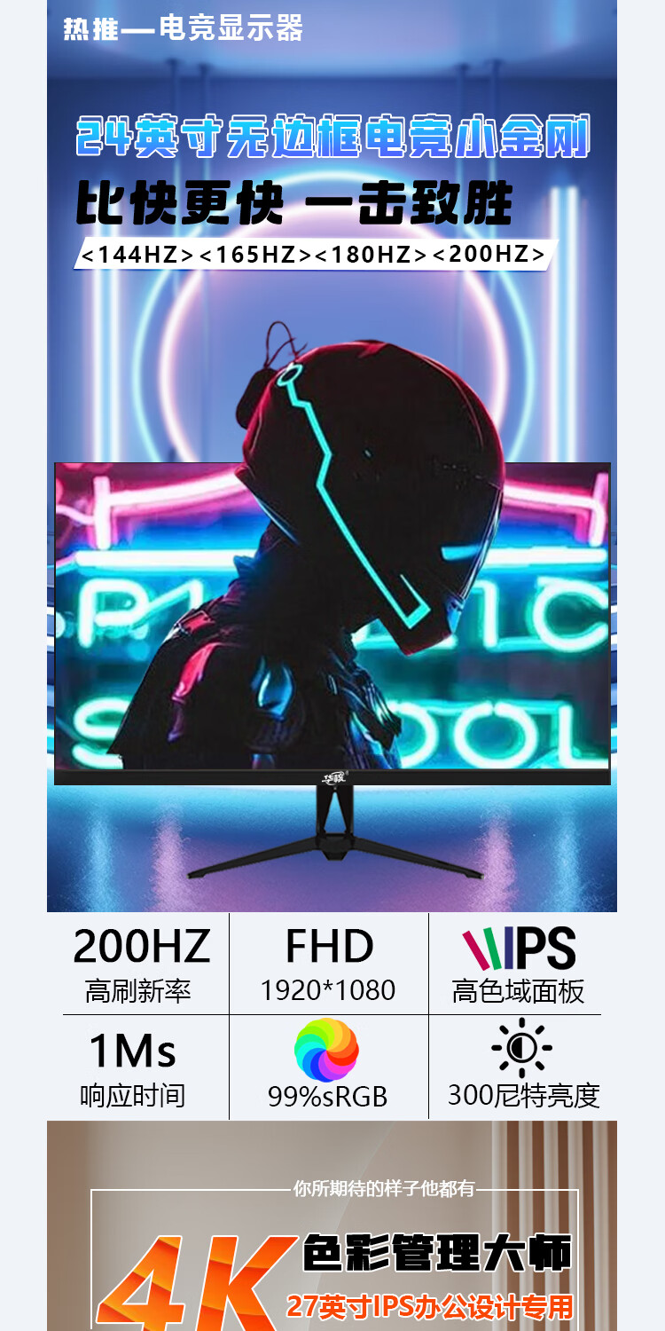 【24英寸-165HZ-ips-全面屏】直面黑色