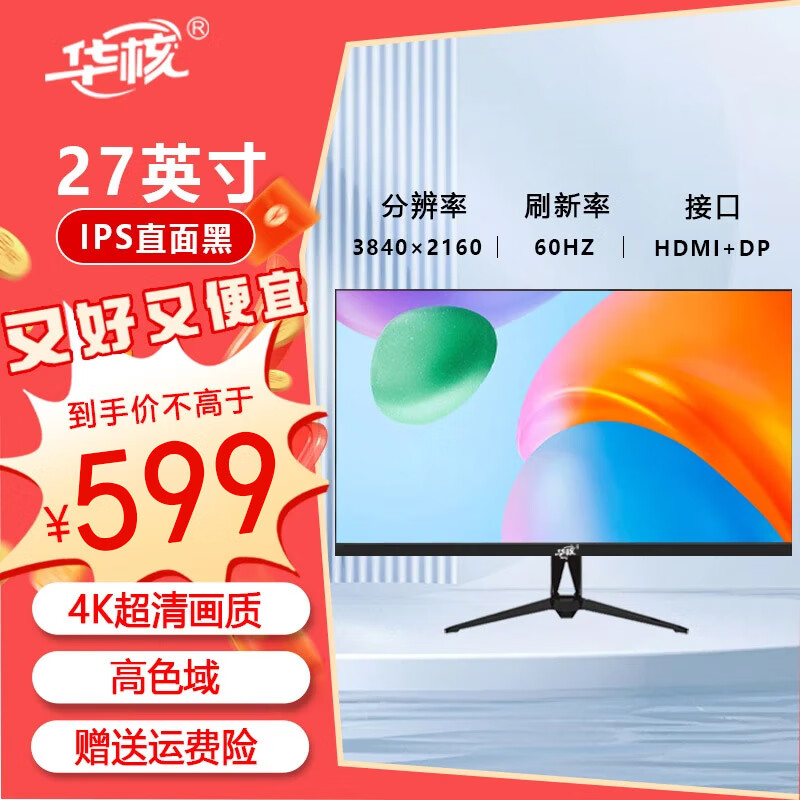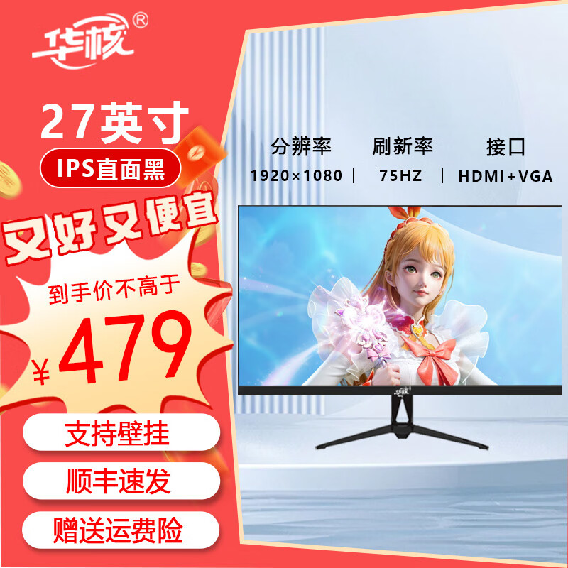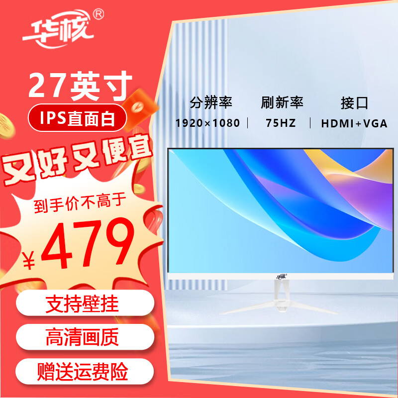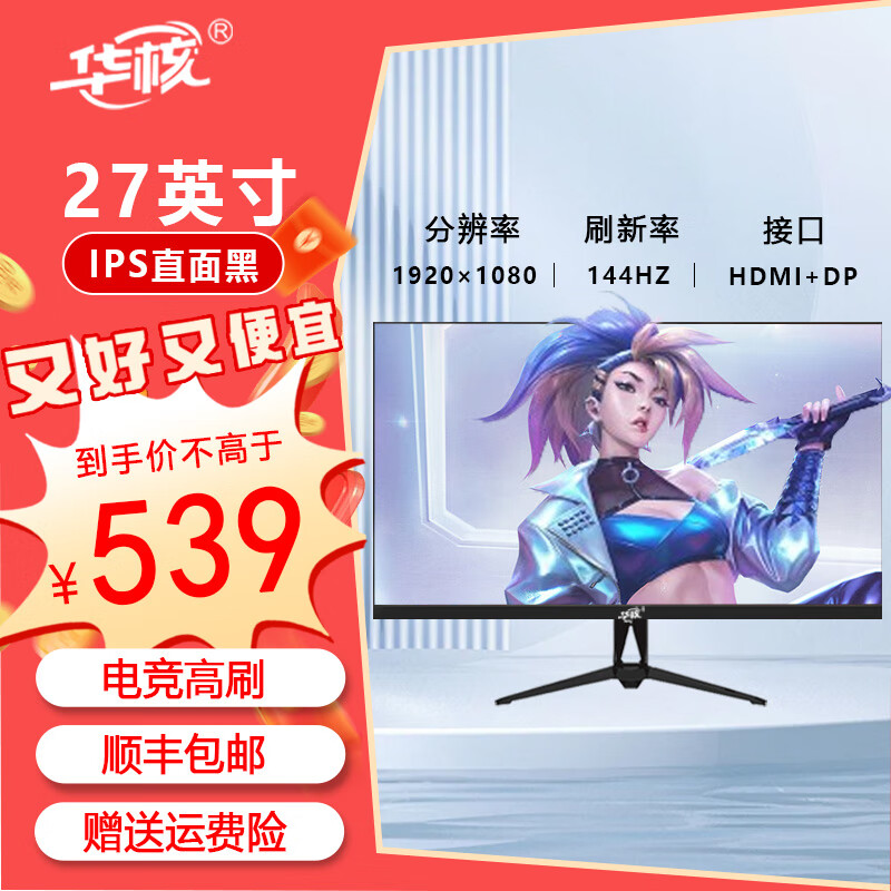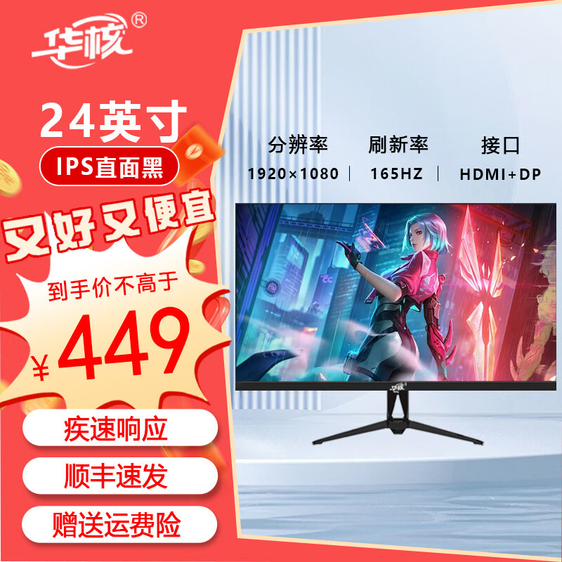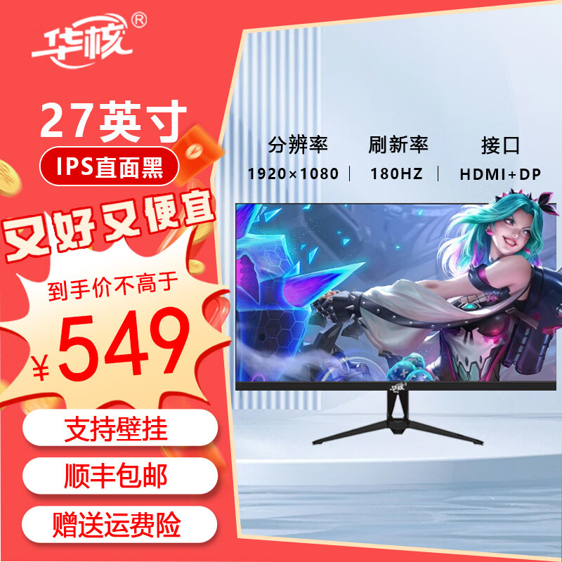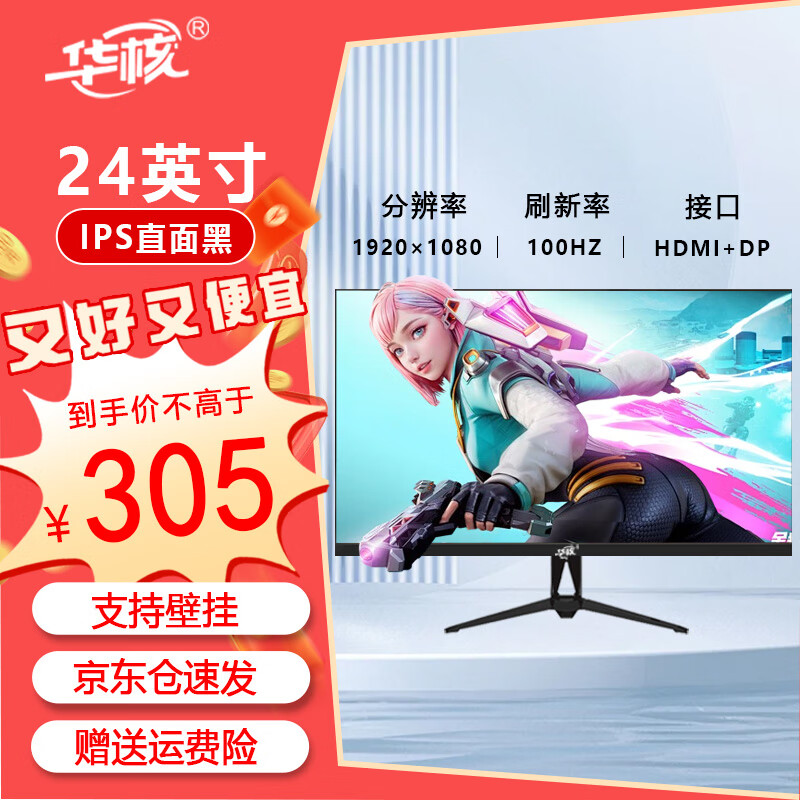 华核台式电脑显示器电竞游戏屏幕办公家用监控液晶IPS笔记本分屏