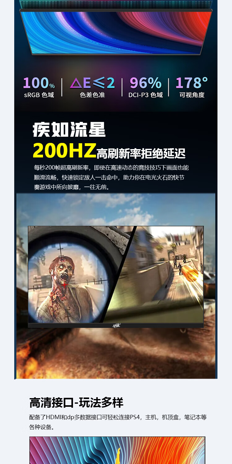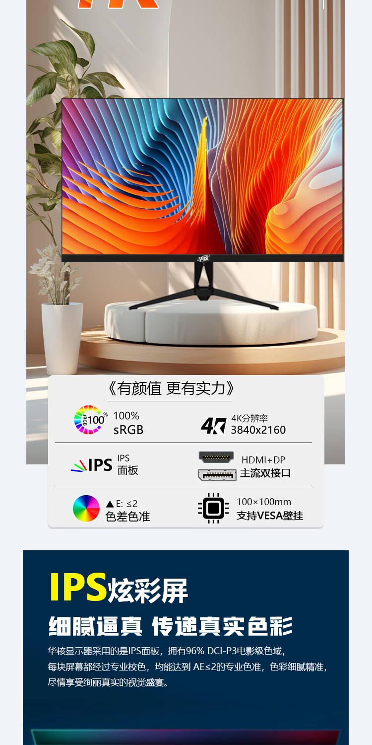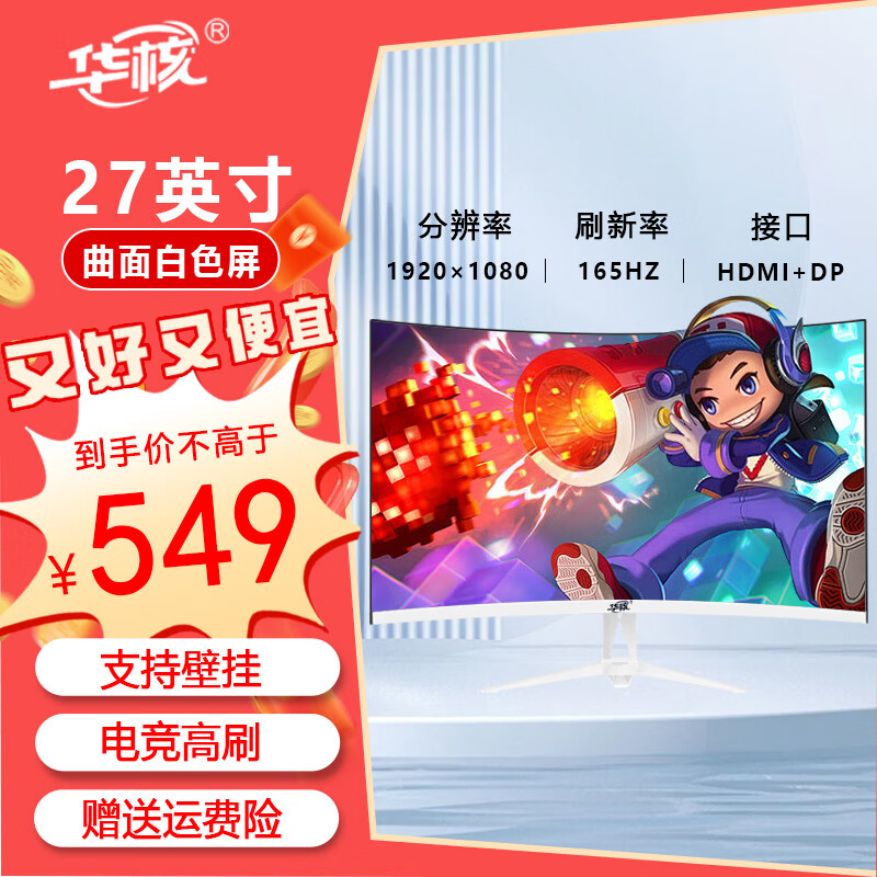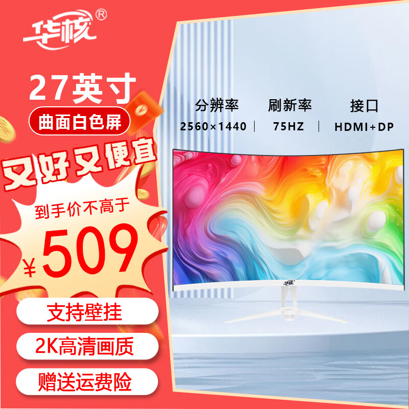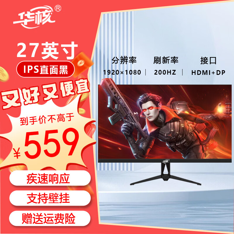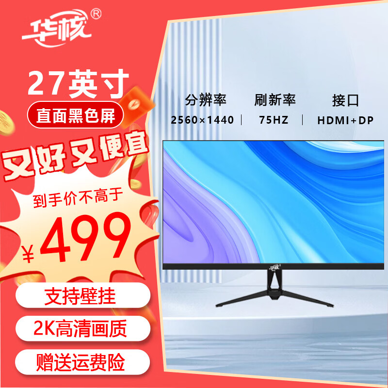 华核台式电脑显示器电竞游戏屏幕办公家用监控液晶IPS笔记本分屏