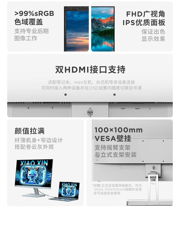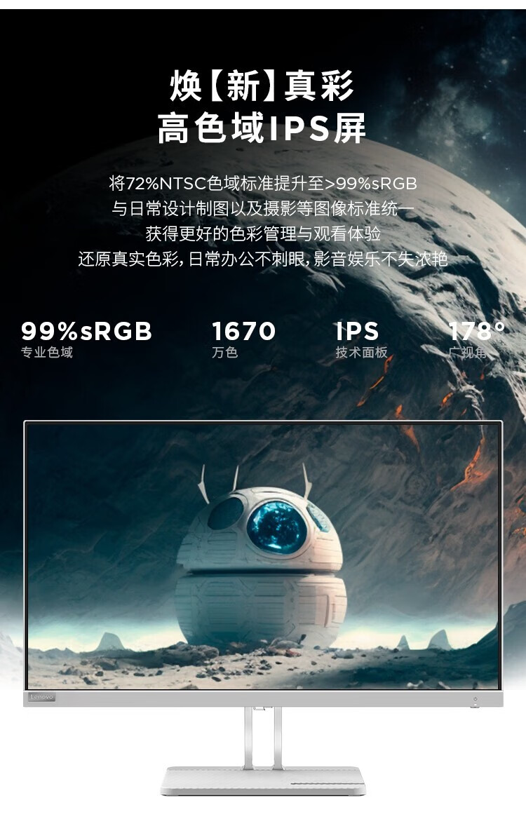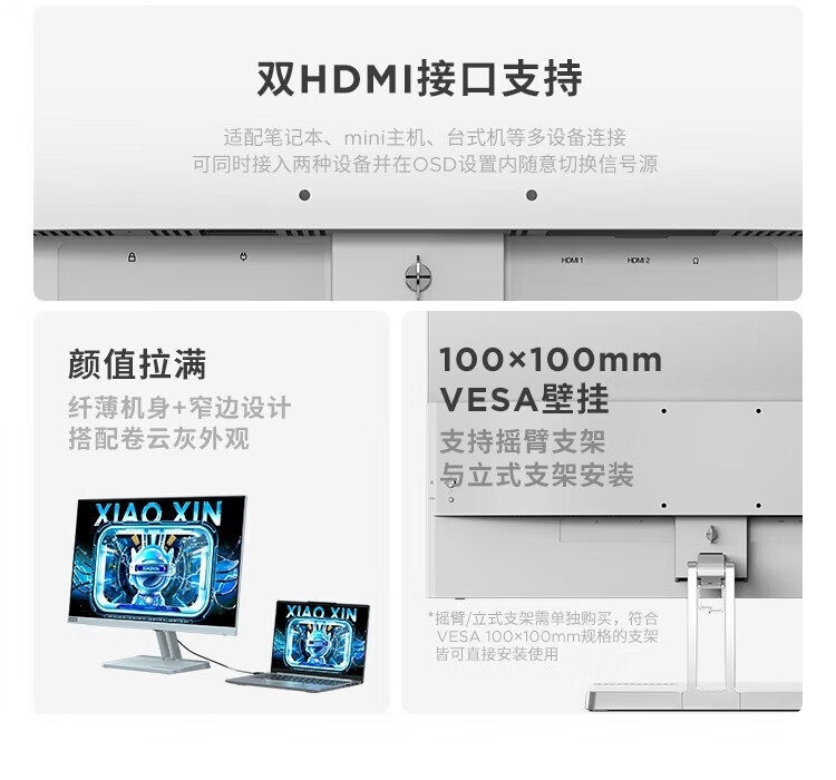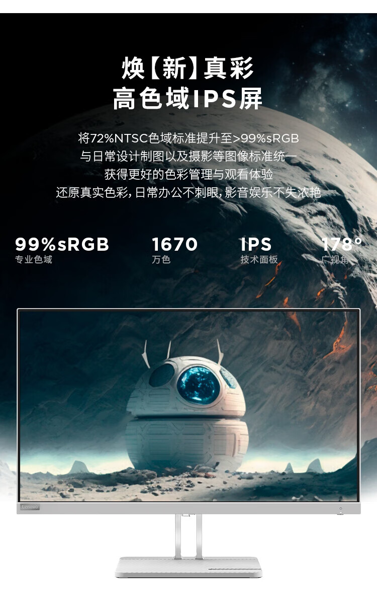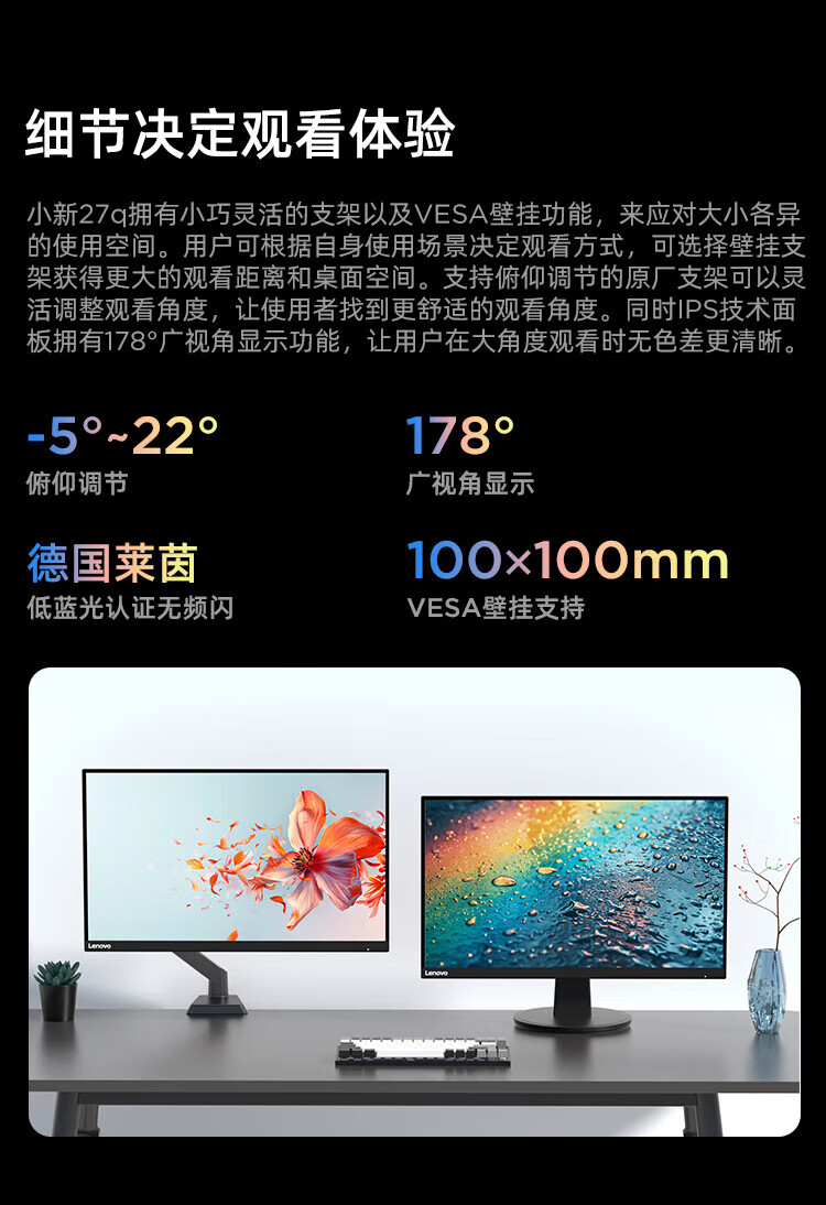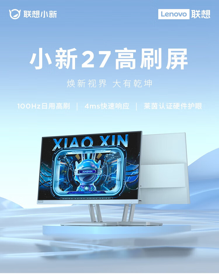 联想 小新显示器 硬件低蓝光 护眼认证 99%色域 HDMI接口x2 100Hz刷新率 小新27