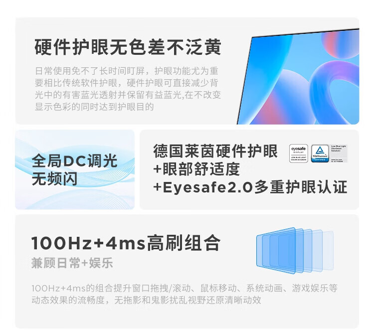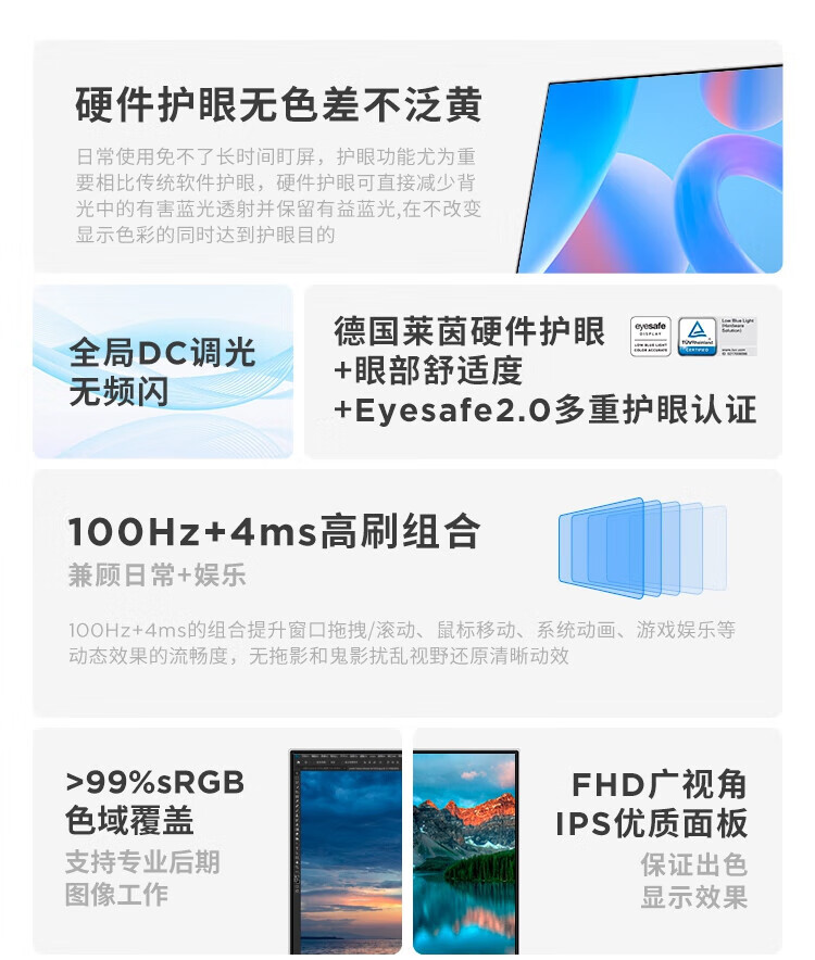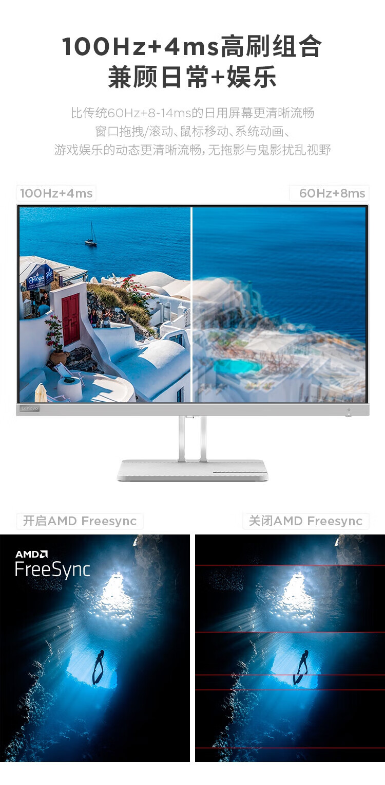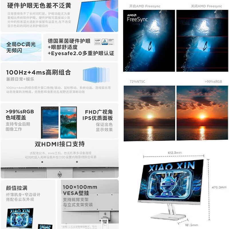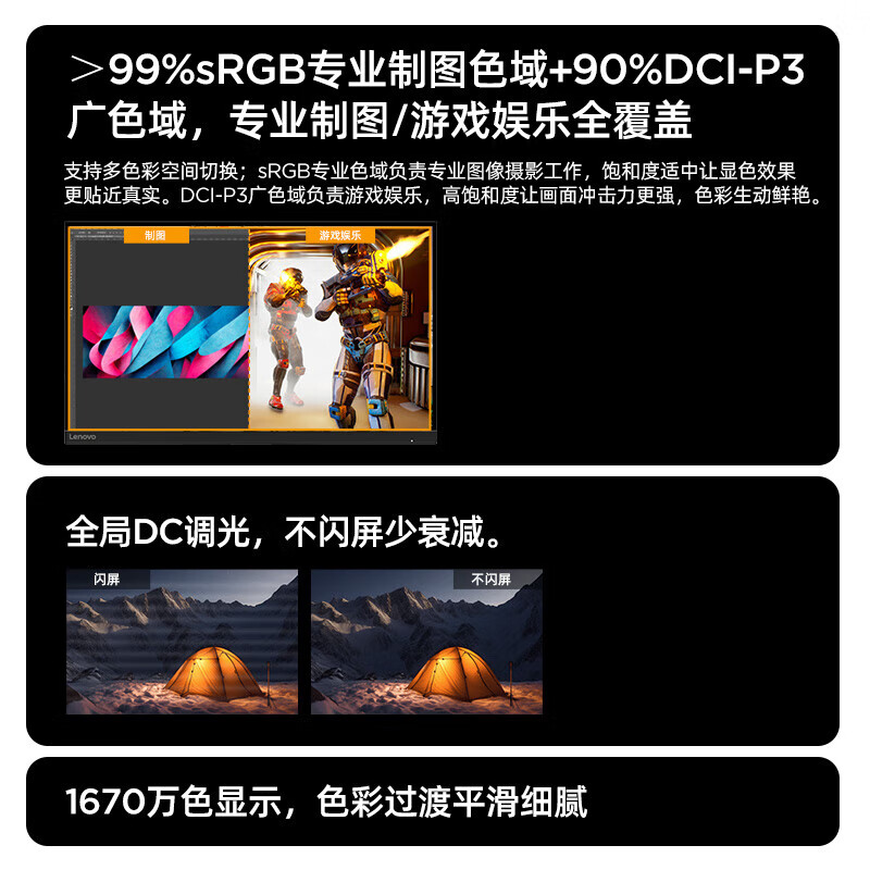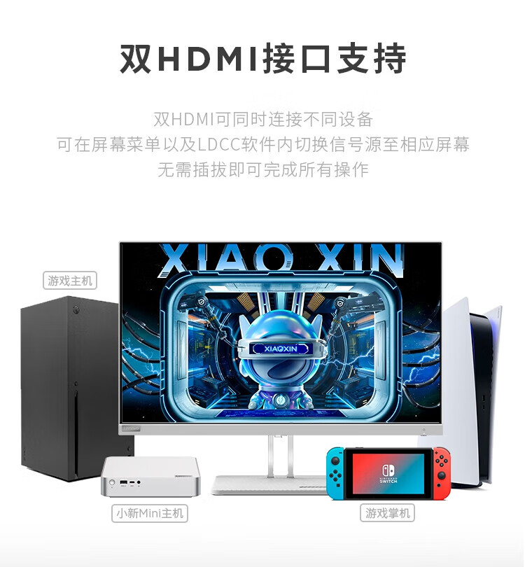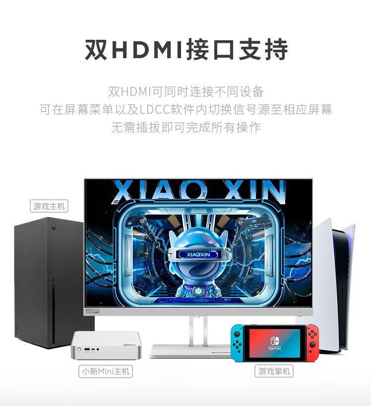 联想 小新显示器 硬件低蓝光 护眼认证 99%色域 HDMI接口x2 100Hz刷新率 小新27