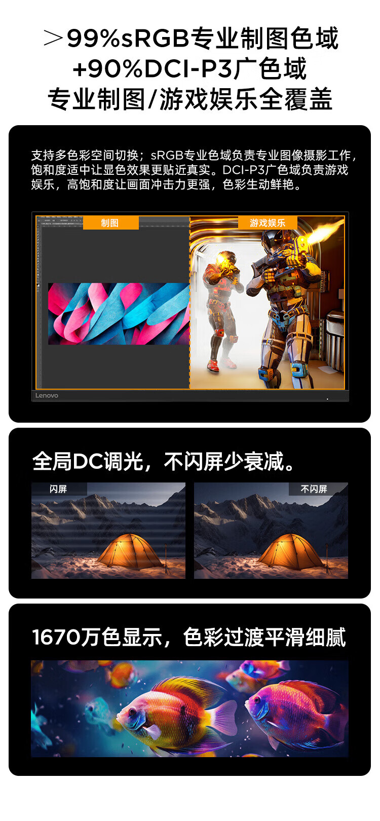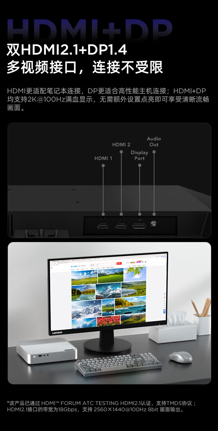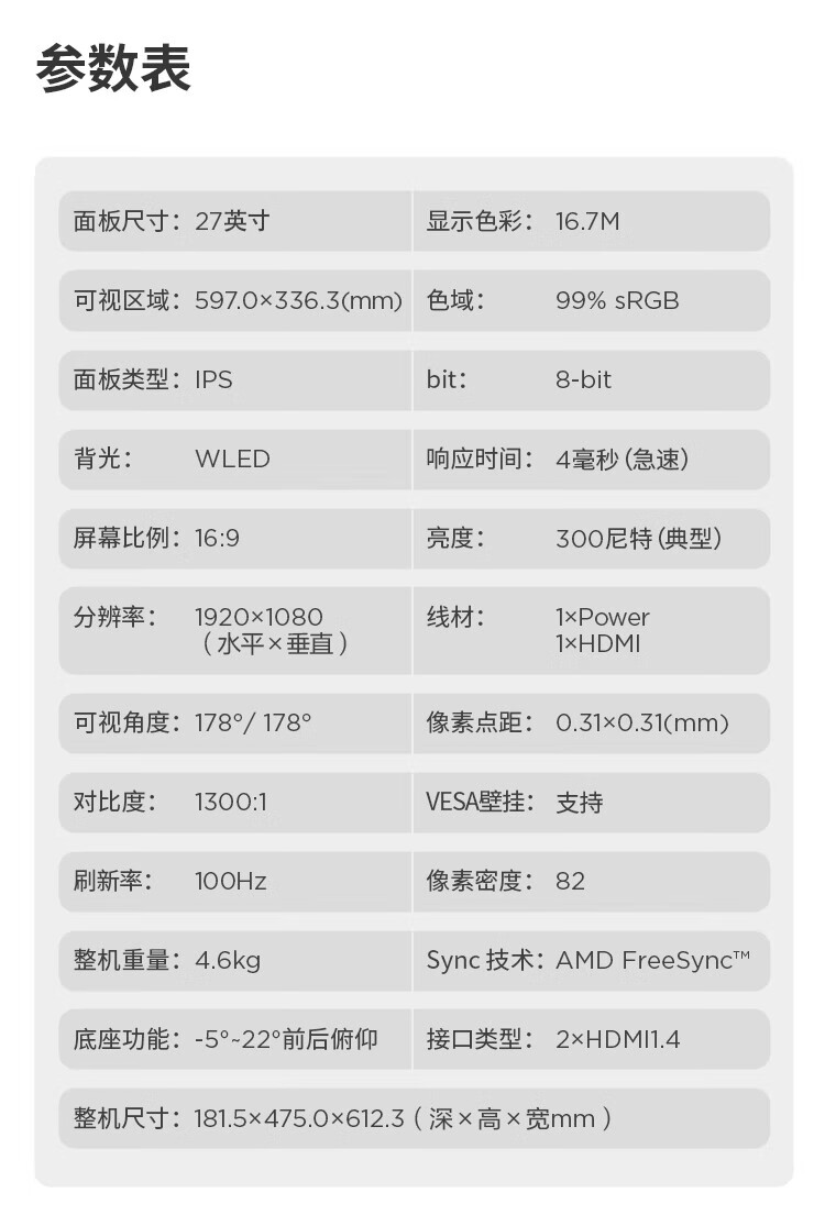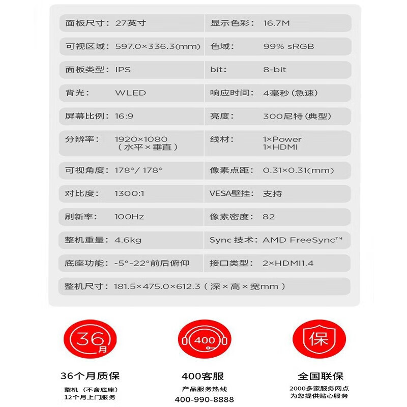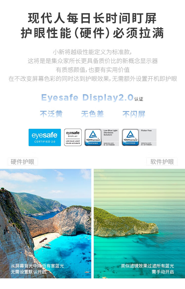 联想 小新显示器 硬件低蓝光 护眼认证 99%色域 HDMI接口x2 100Hz刷新率 小新27