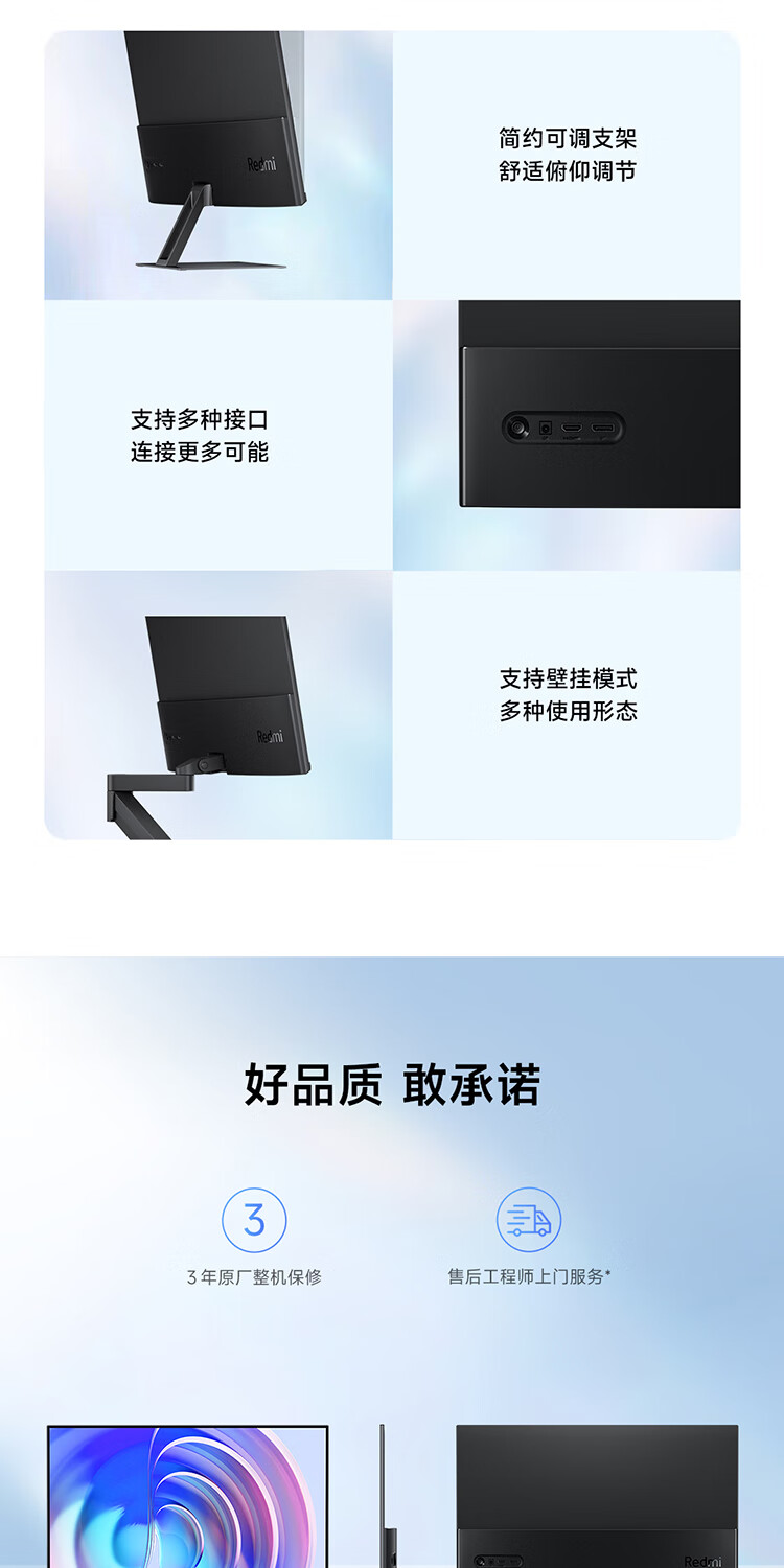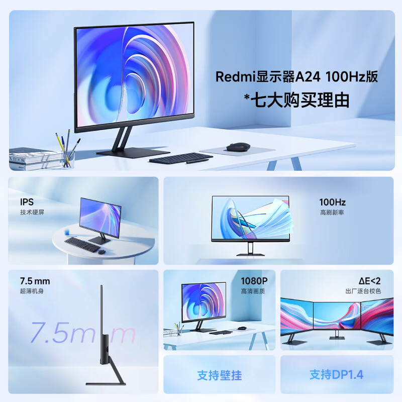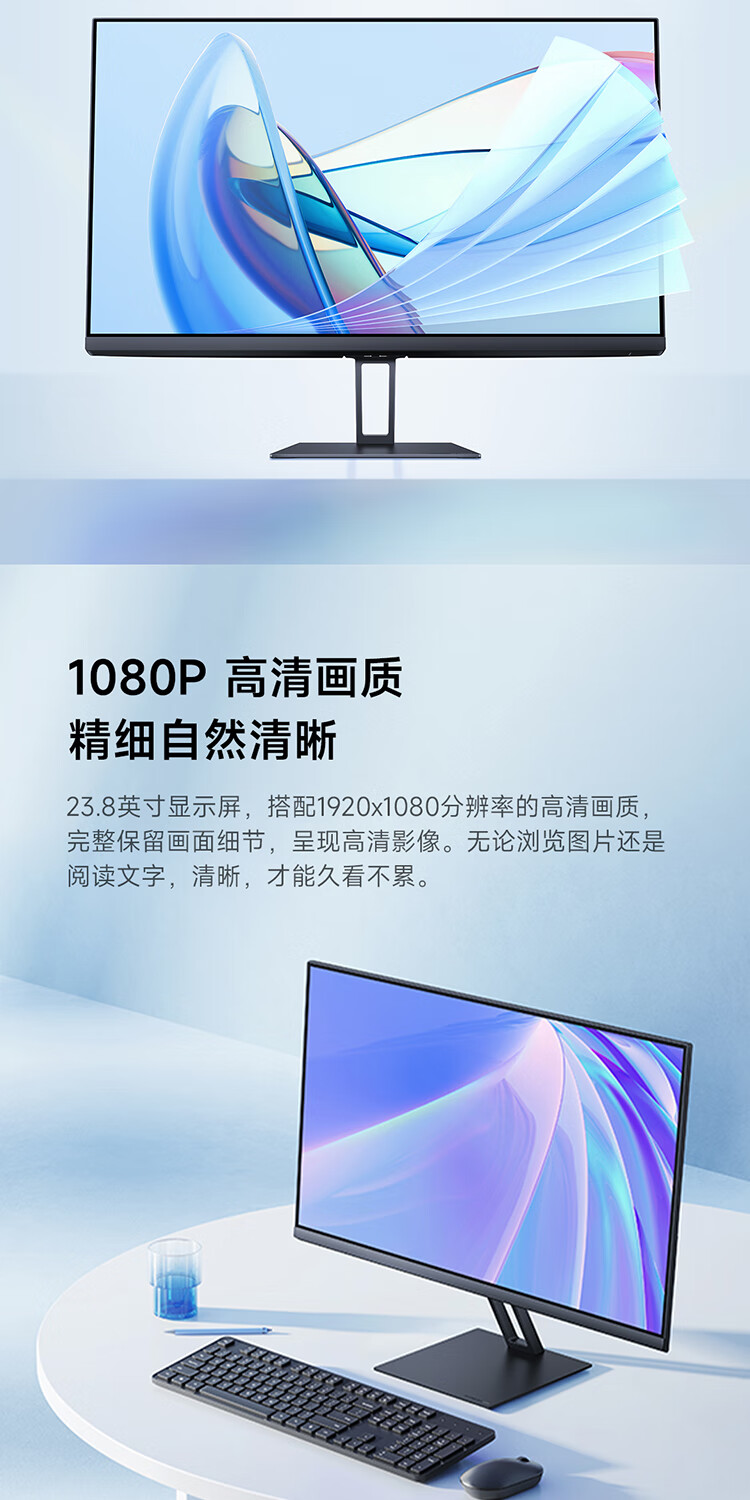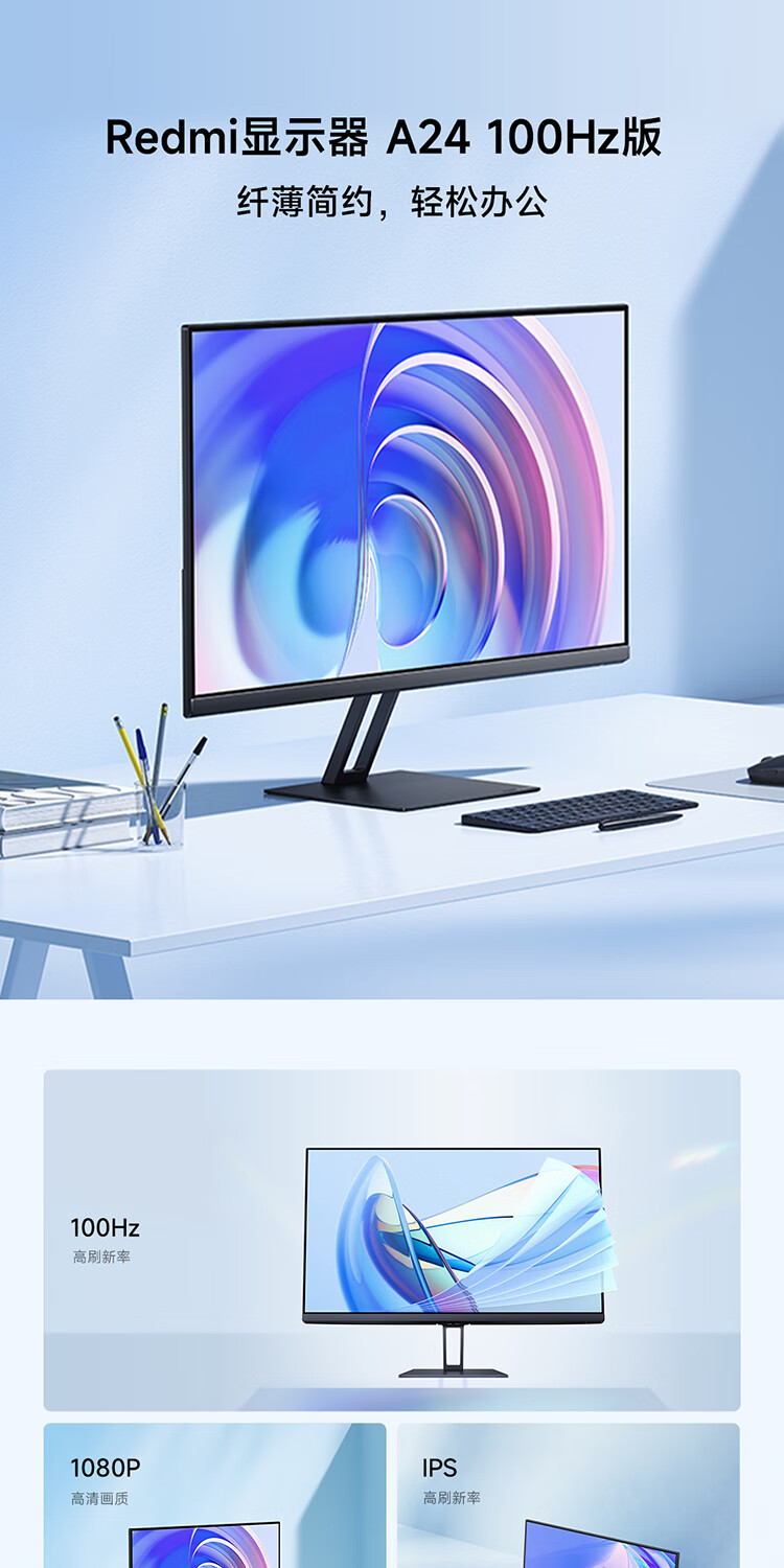 小米Redmi 23.8英寸显示器A24 100Hz版IPS技术硬屏薄机身电脑办公红米显示器显示屏 23.8英寸 100Hz高刷新率