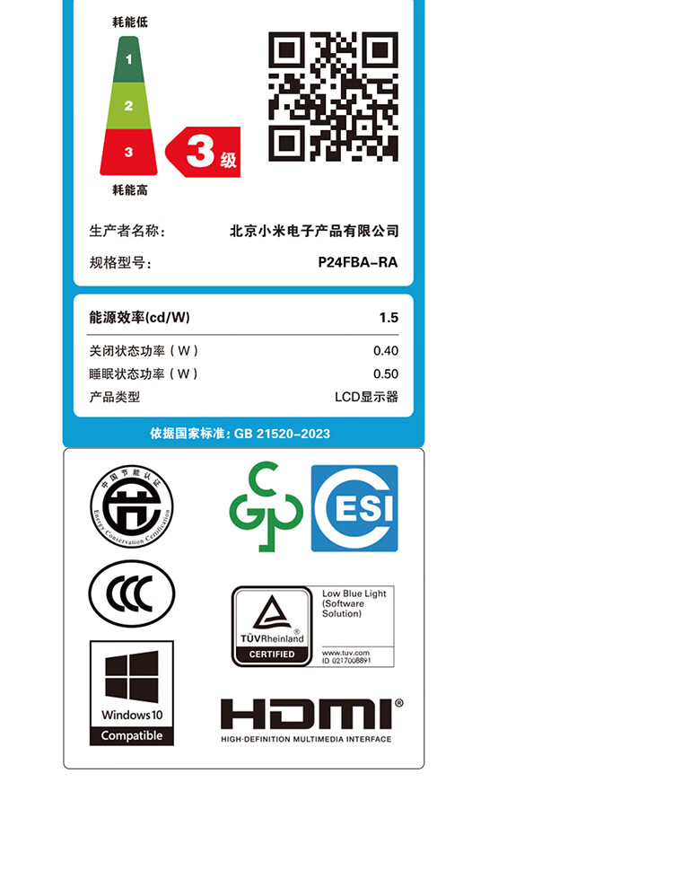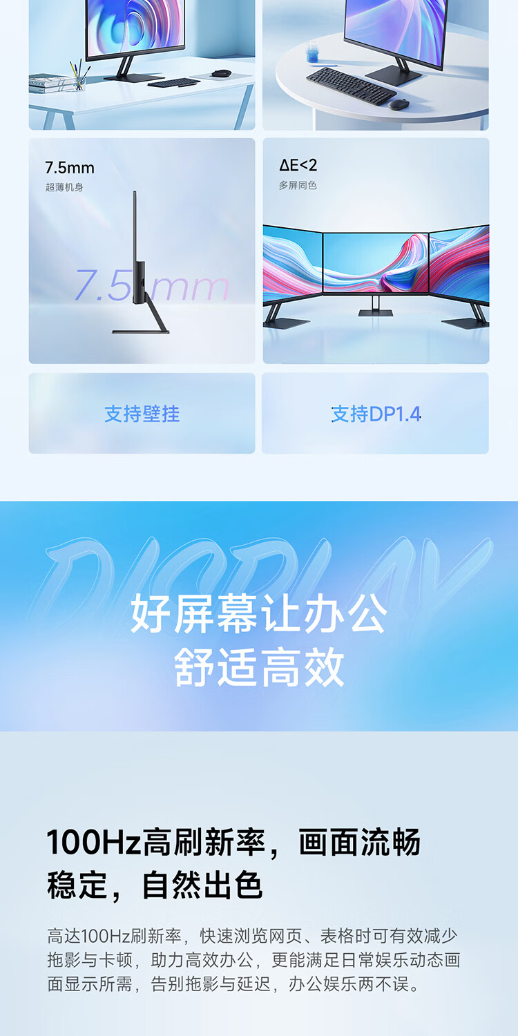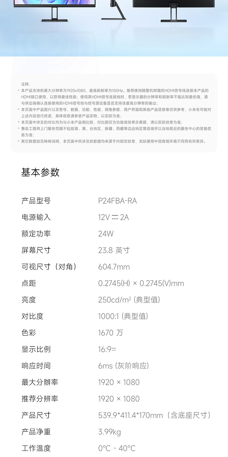 小米Redmi 23.8英寸显示器A24 100Hz版IPS技术硬屏薄机身电脑办公红米显示器显示屏 23.8英寸 100Hz高刷新率