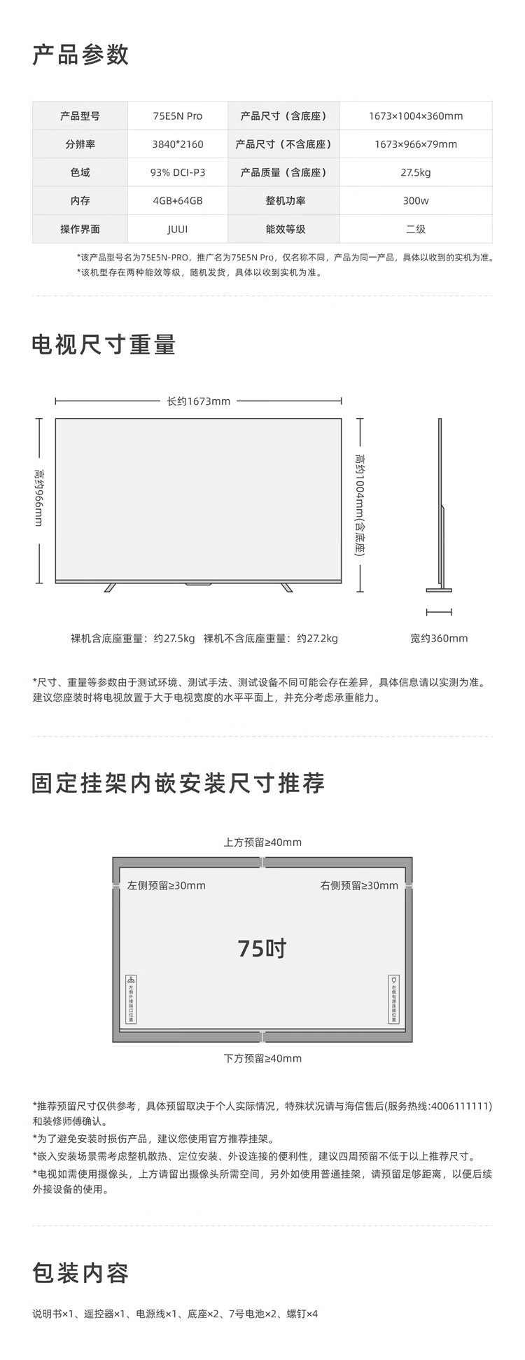 说明书*1;遥控器*1;电源线*1;底座*2;7号电池*2; 螺钉*4;