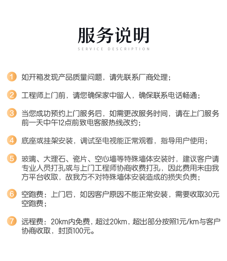 海信电视上门安装服务56-75英寸(挂装含摇摆挂架)
