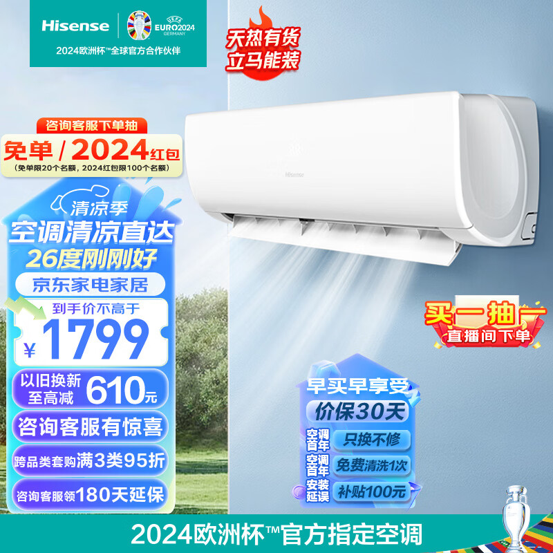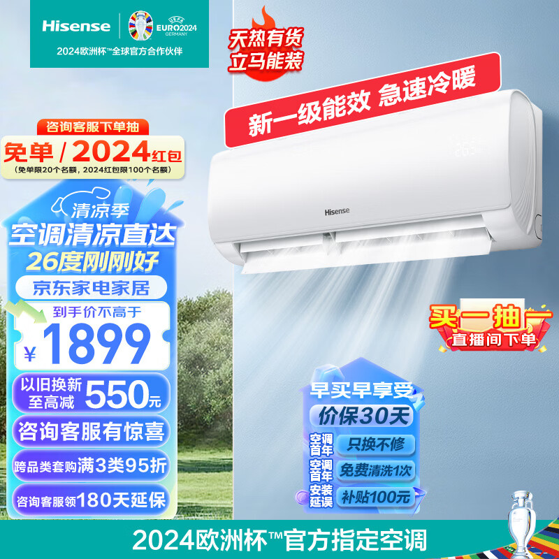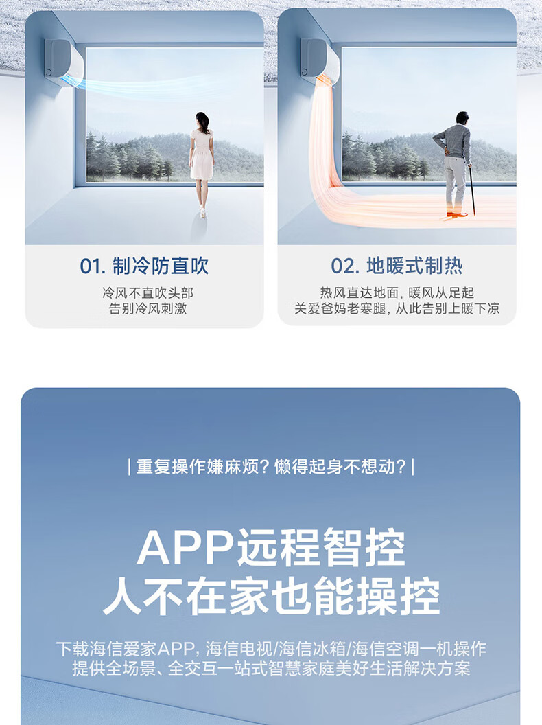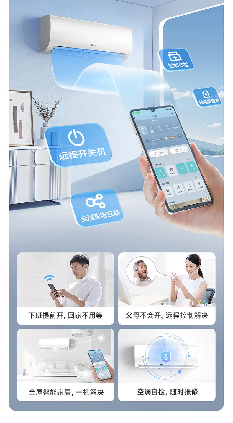 海信(Hisense)大1.5匹 速冷热 新一级能效 大风量速冷暖 APP智能防直吹壁挂式卧室空调挂机