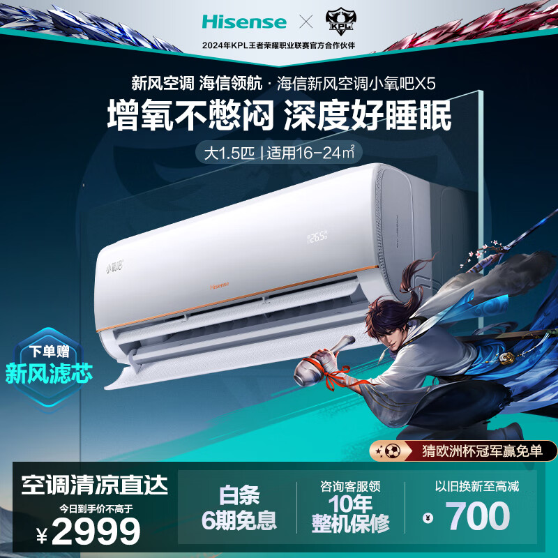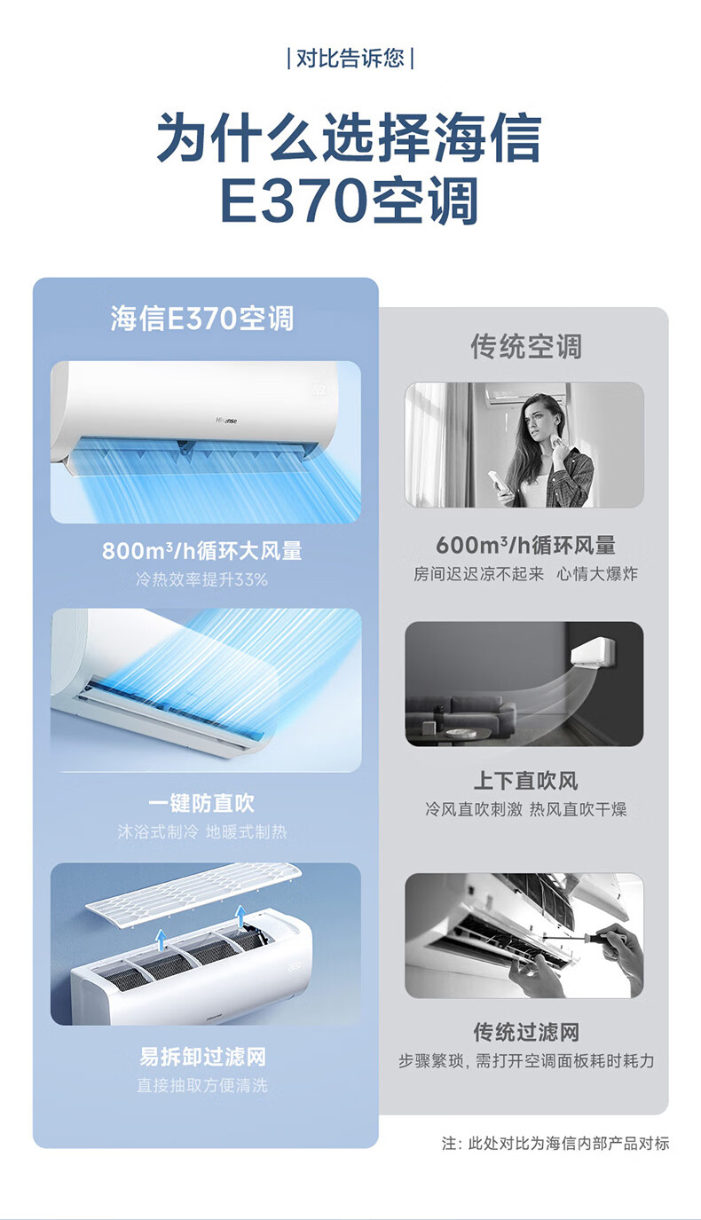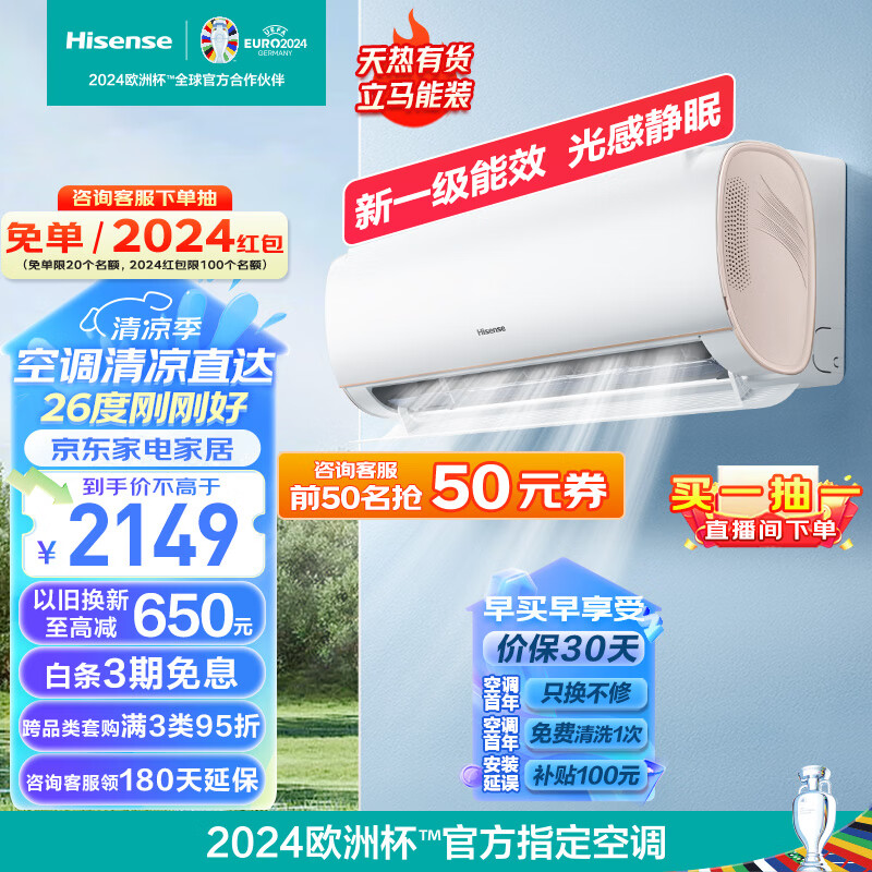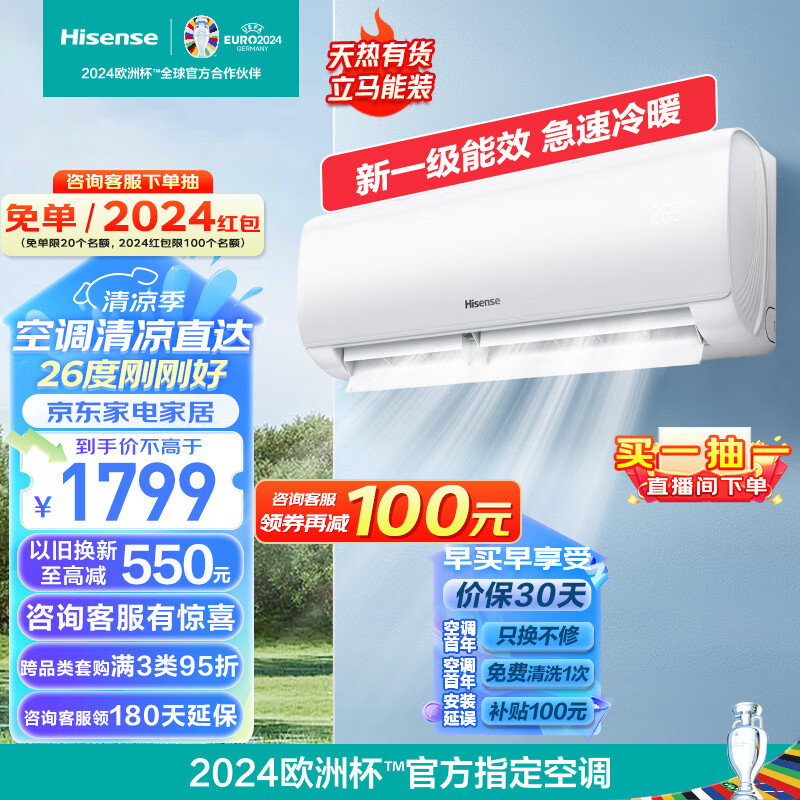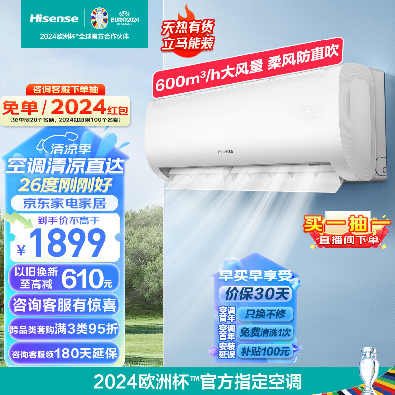 海信(Hisense)大1.5匹 速冷热 新一级能效 大风量速冷暖 APP智能防直吹壁挂式卧室空调挂机