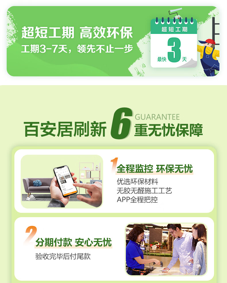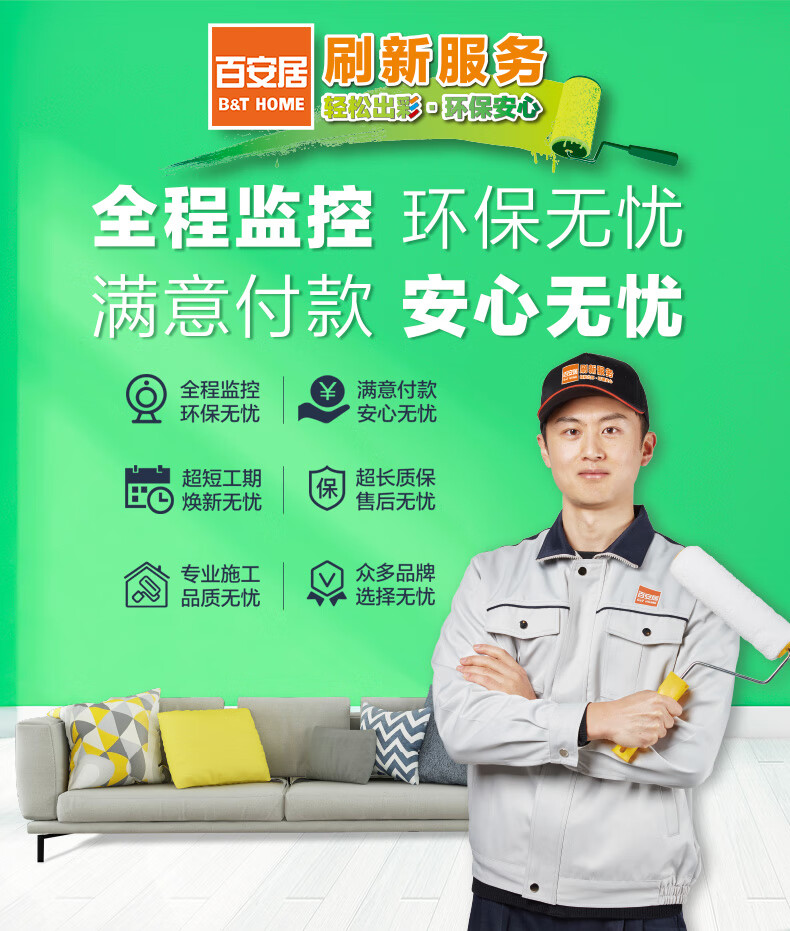 百安居刷新服务 签约款 室内刷墙刷漆 全屋涂刷服务 环保家装 局部装修