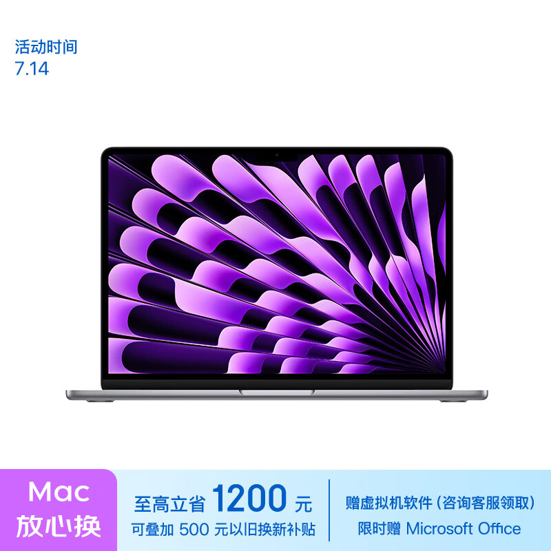 Apple/苹果AI笔记本/2024MacBookAir13.6英寸M3(8+8核)8G256G银色电脑MRXQ3CH/A