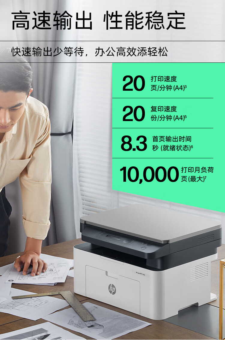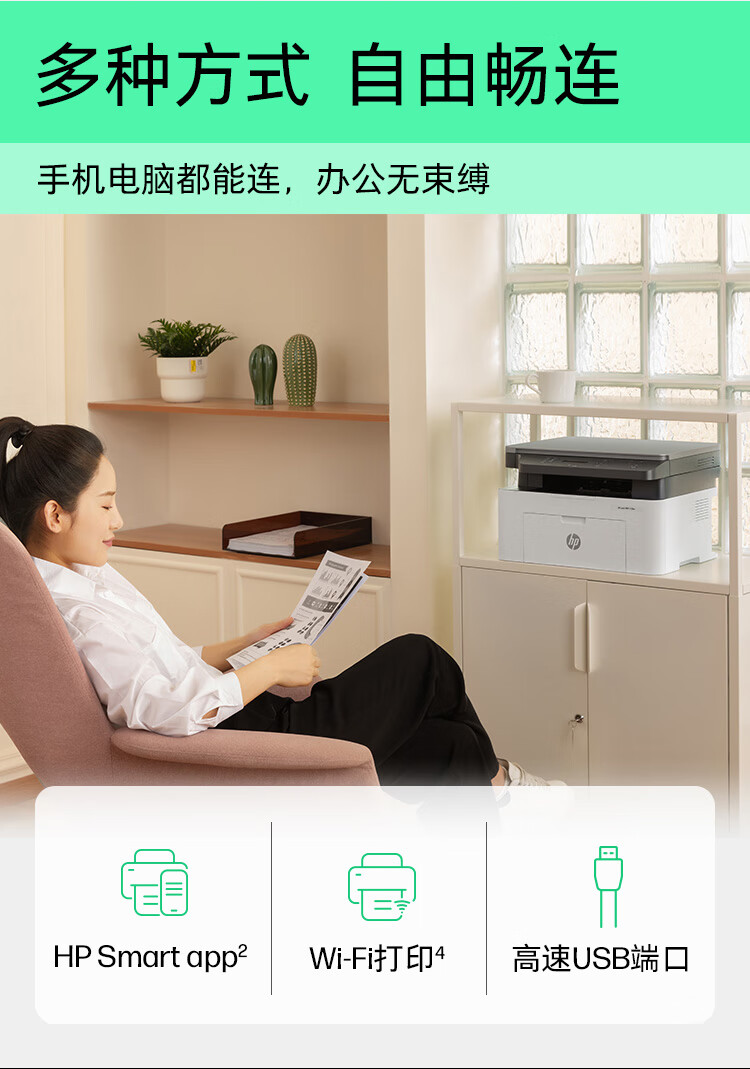惠普(HP)1136w 黑白激光打印机多功能家用办公打印机 复印扫描无线商用办公(136w升级版)