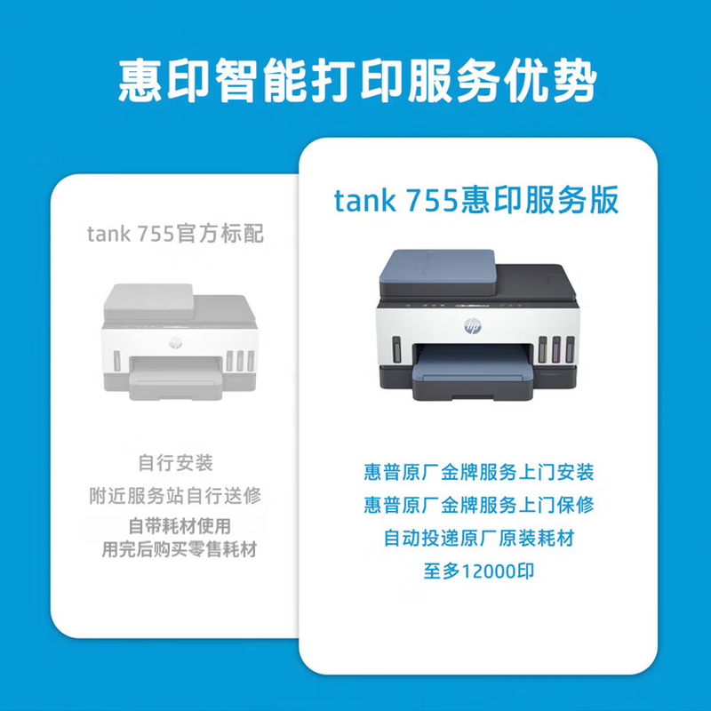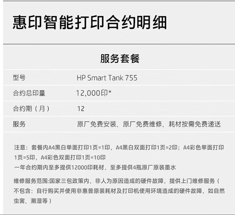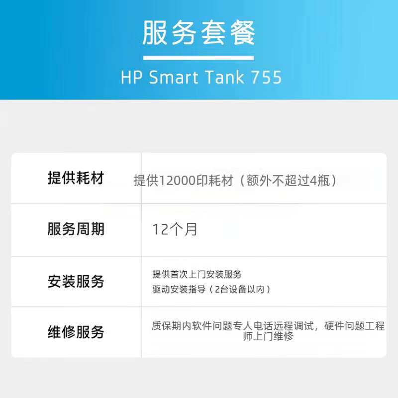 惠普(HP)惠印服务1.2万印 755墨仓彩色打印机 打印复印扫描三合一