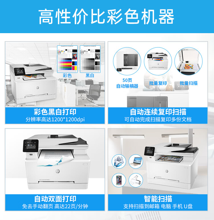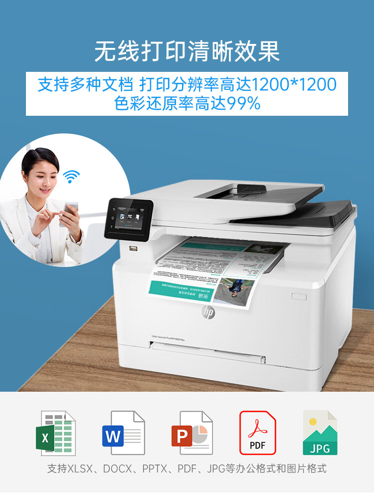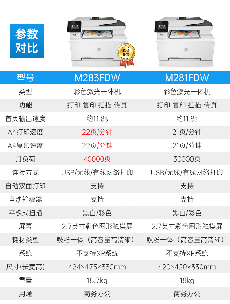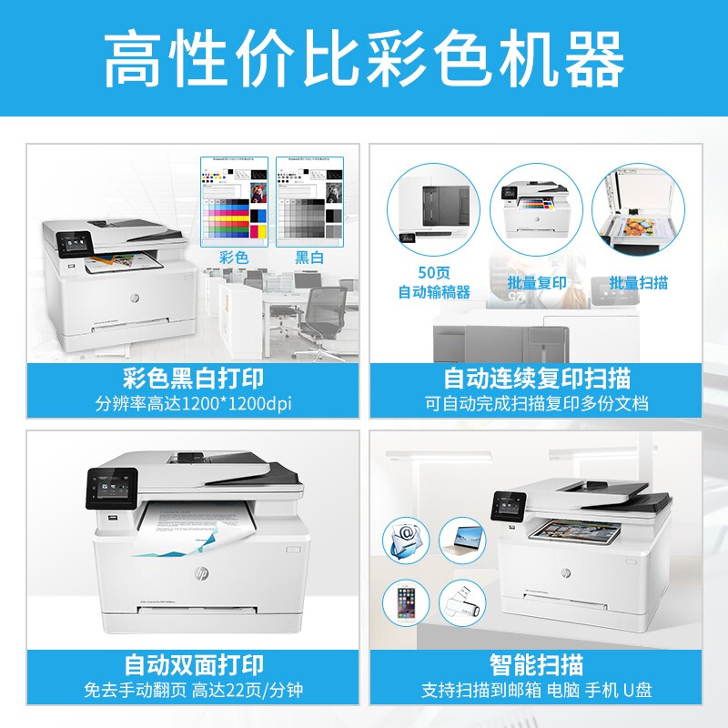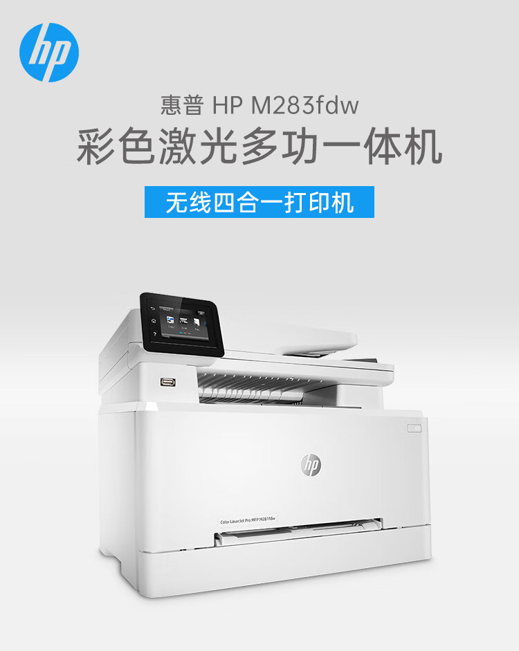 惠普(HP) M283FDW彩色激光打印机复印扫描传真一体机无线自动双面多功能四合一办公家用