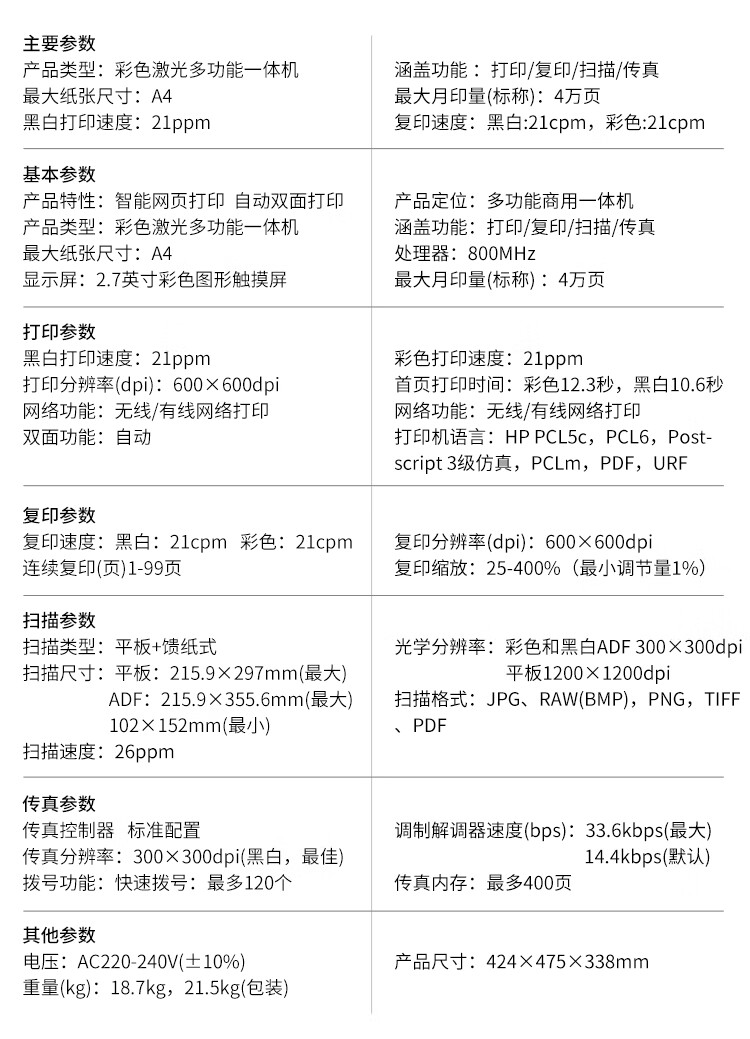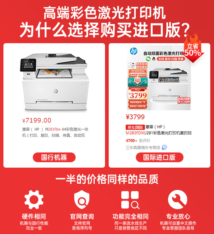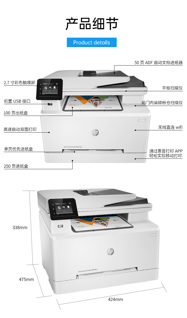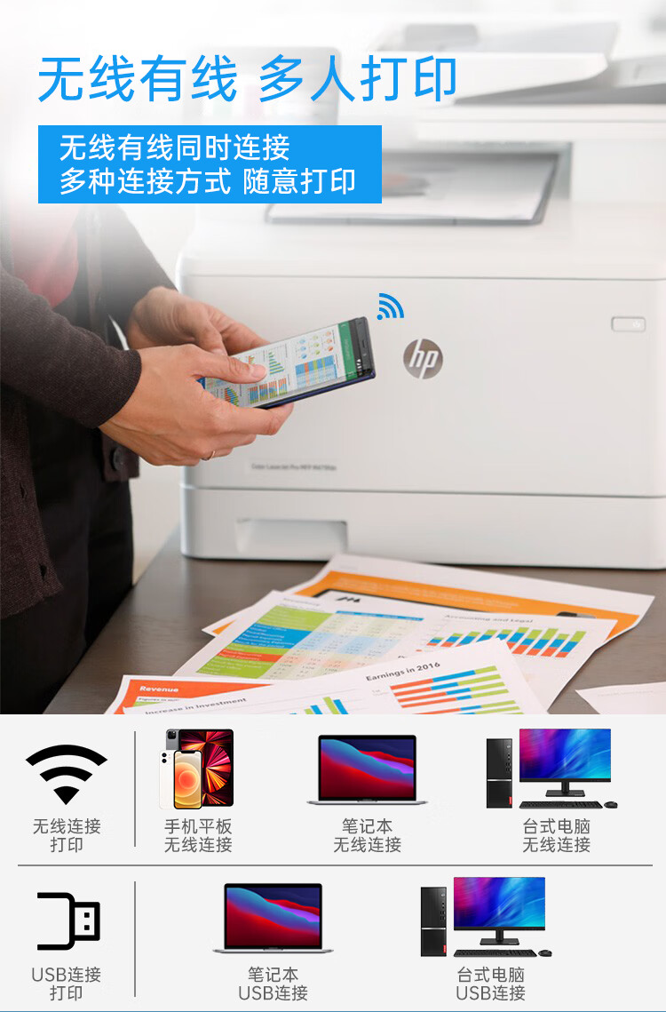 惠普(HP) M283FDW彩色激光打印机复印扫描传真一体机无线自动双面多功能四合一办公家用
