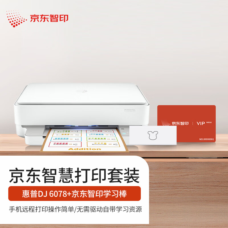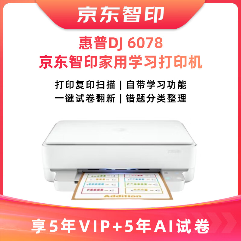 惠普(HP)DJ 6078无线家用喷墨打印机 彩色打印扫描复印多功能学生家用 照片打印