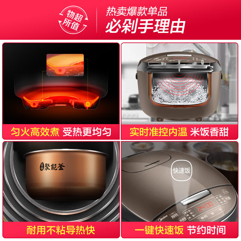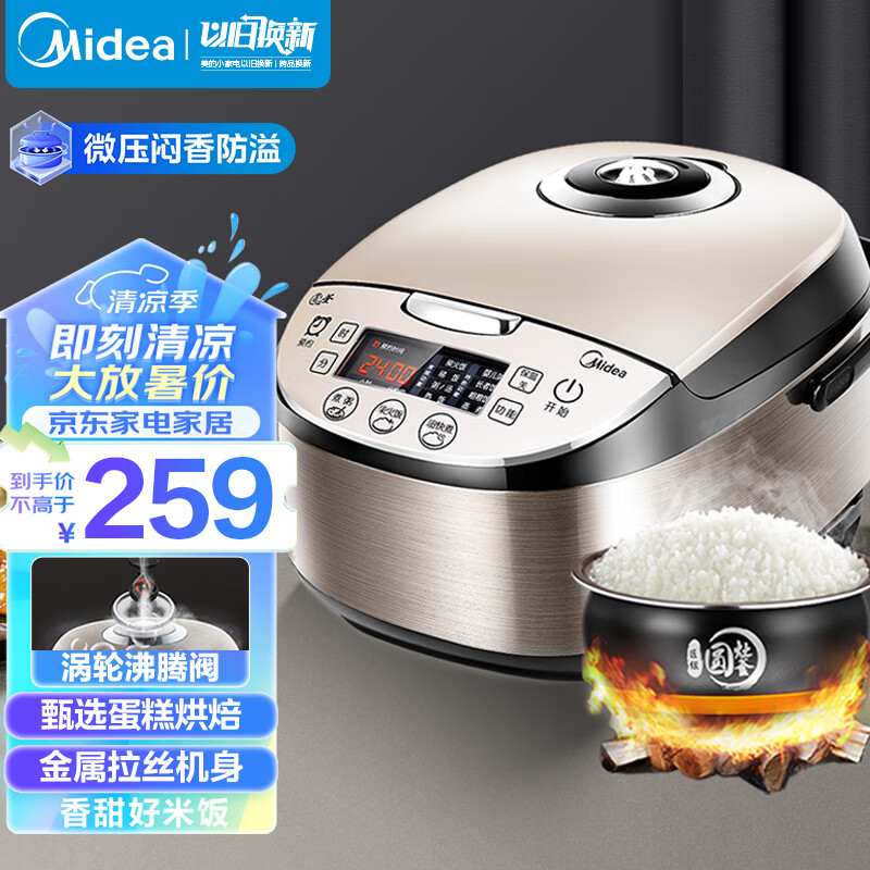 美的(Midea)智能电饭煲电饭锅家用4L可拆蒸汽阀24H预约蒸煮米饭锅FB40simple111(3-8人)
