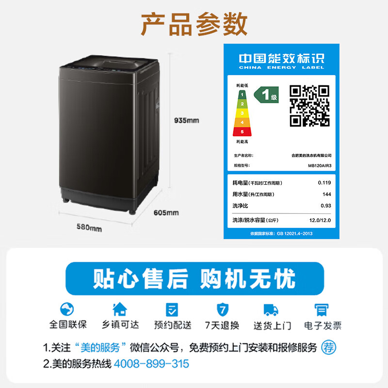 美的(Midea)波轮洗衣机全自动 元气轻氧系列 12公斤 直驱变频 银离子活性除菌 健康除螨