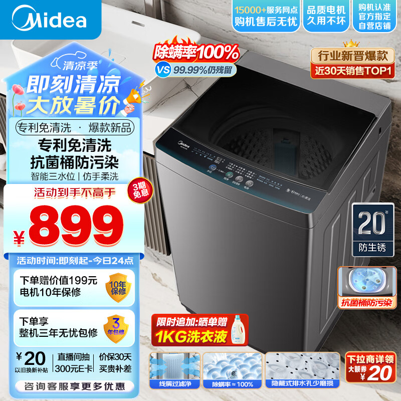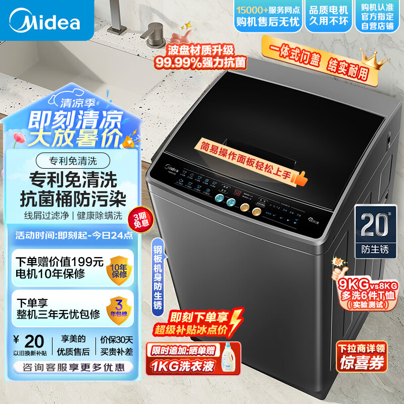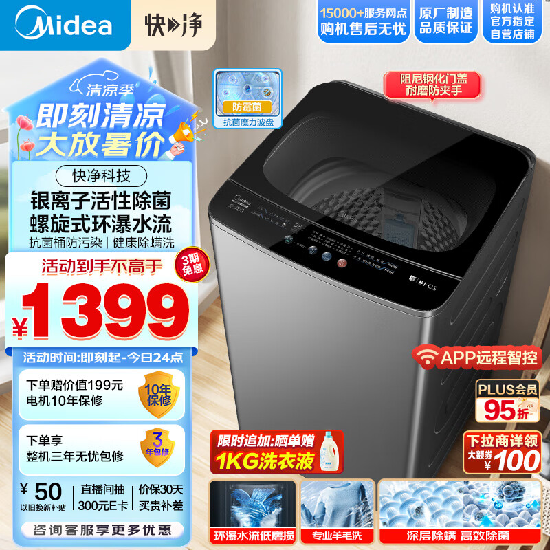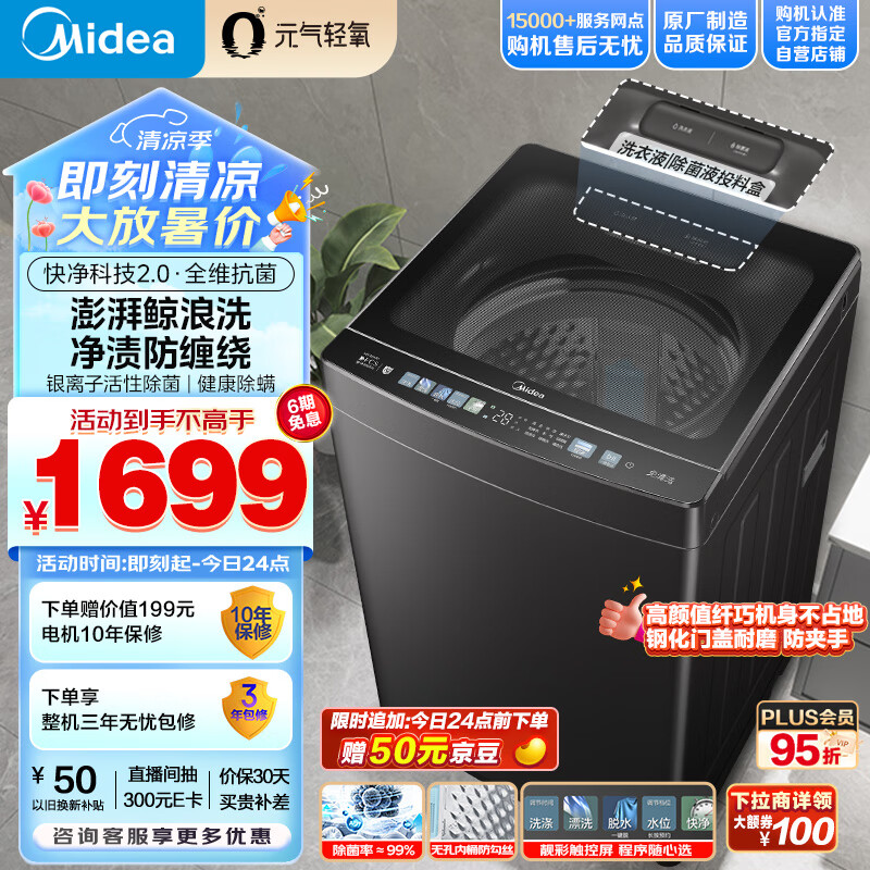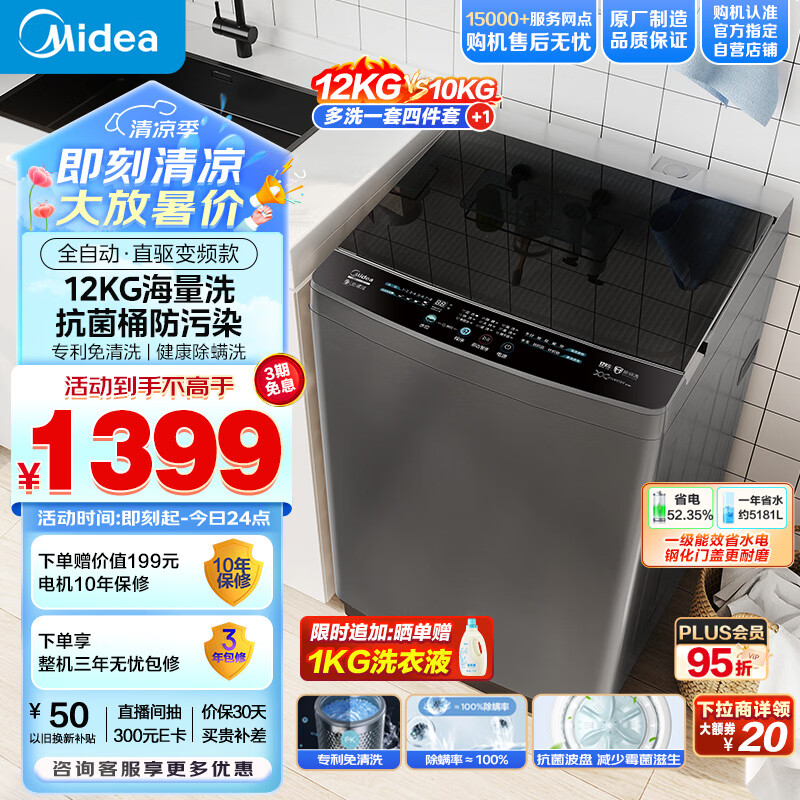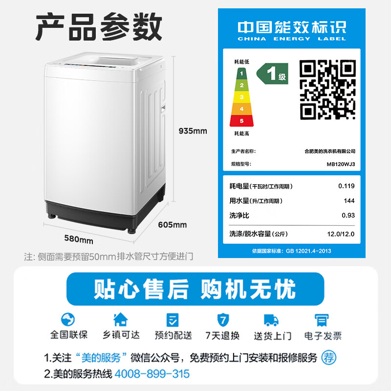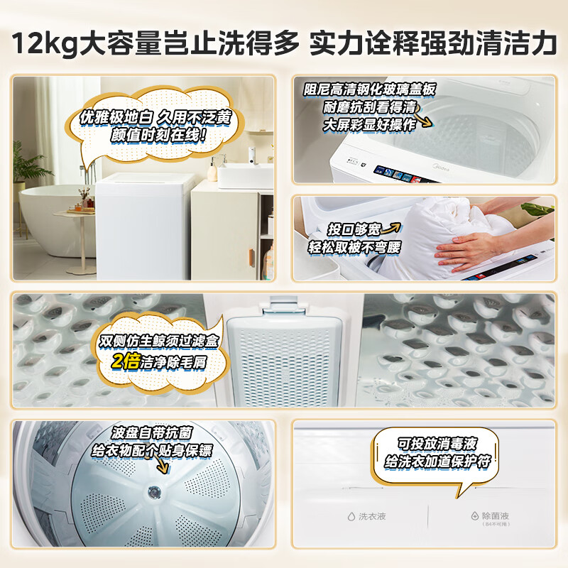 美的(Midea)波轮洗衣机全自动 12公斤大容量 元气轻氧小白鲸 MB120WJ3 全擎直驱快净 防变黄科技