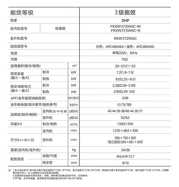 3匹 三级能效 FKXW372WAC-W白色
