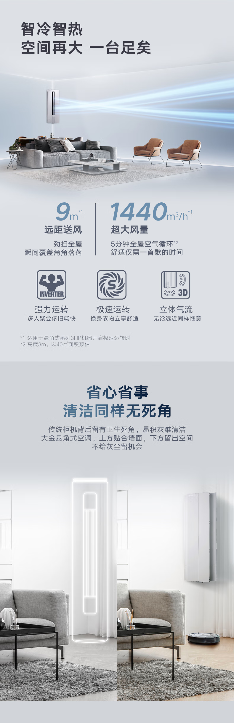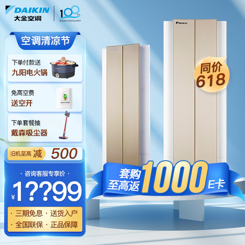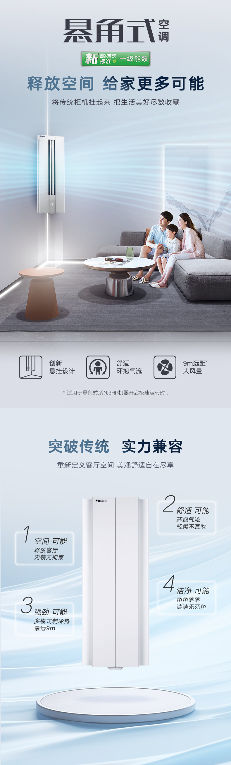 大金空调(DAIKIN)新一级能效 E-MAX α悬角式 高端变频康达冷暖广角 自清洁立柜式以旧换新 3匹 一级能效