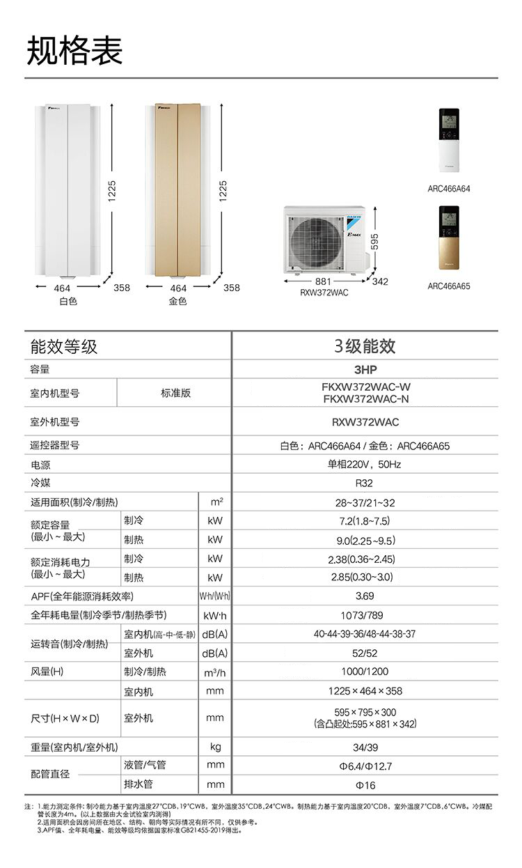 3匹 一级能效 FKXW172WAC-W白色
