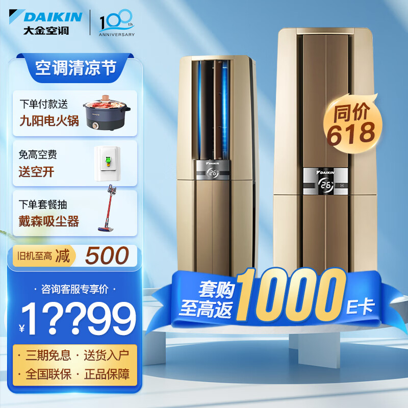 大金空调(DAIKIN) 3匹 E-MAX 帕蒂能 旗舰 直流变频冷暖 环抱气流 立柜式客厅 以旧换新 3匹 一级能效 FVXF172WC-W白色