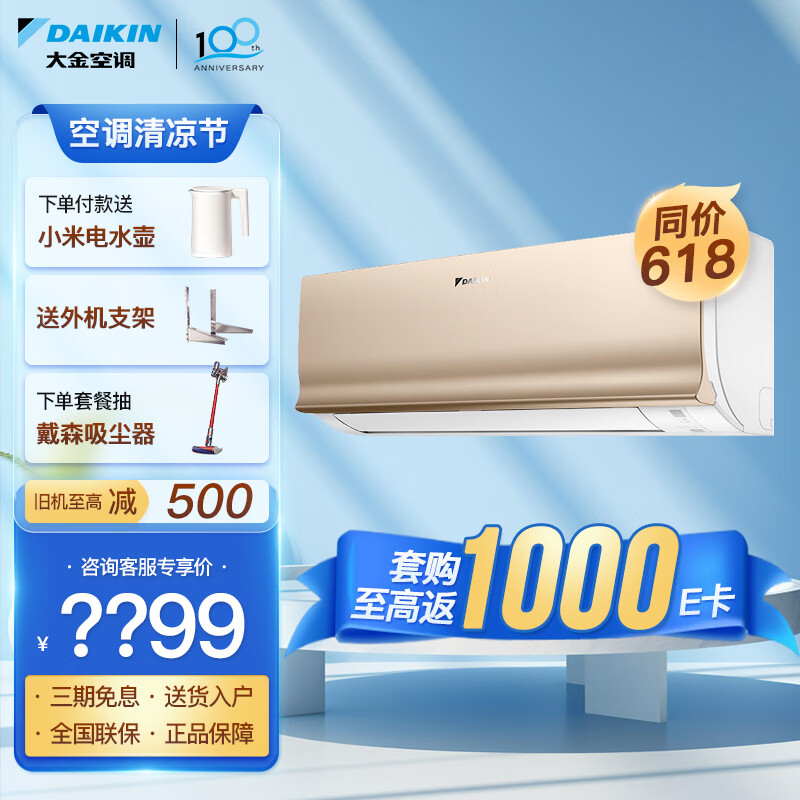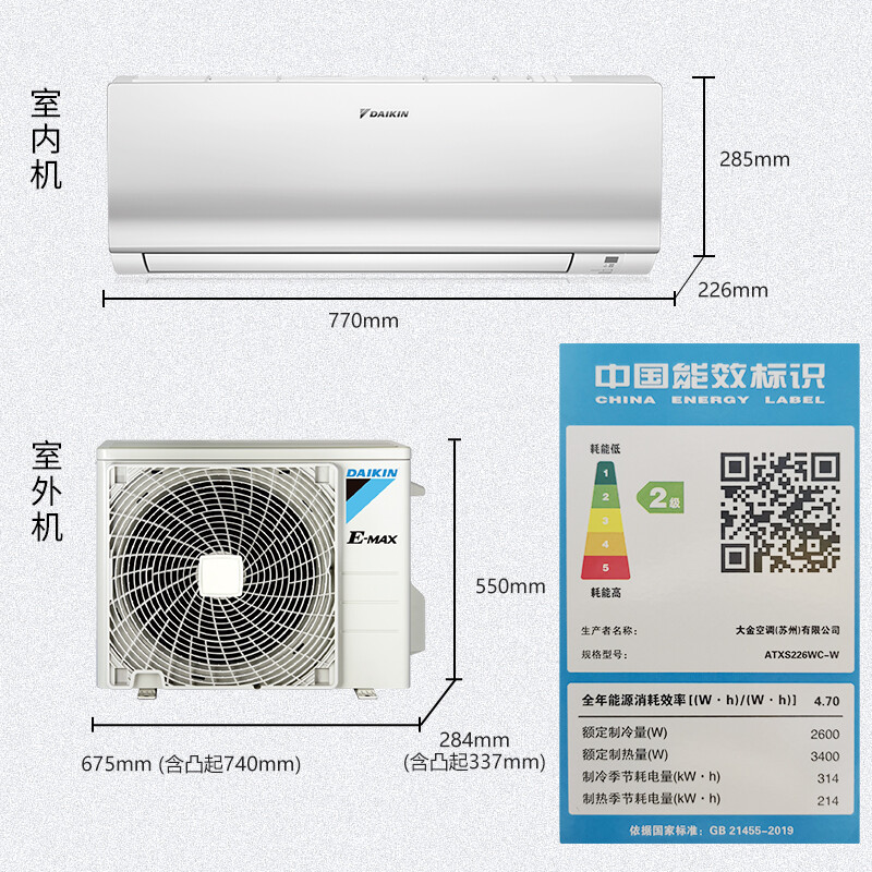 大金空调(DAIKIN)新二级能效 E-MAX 7系列变频冷暖 自清洁挂机 室内 以旧换新 大1匹 二级能效
