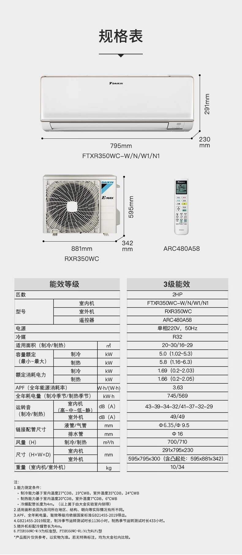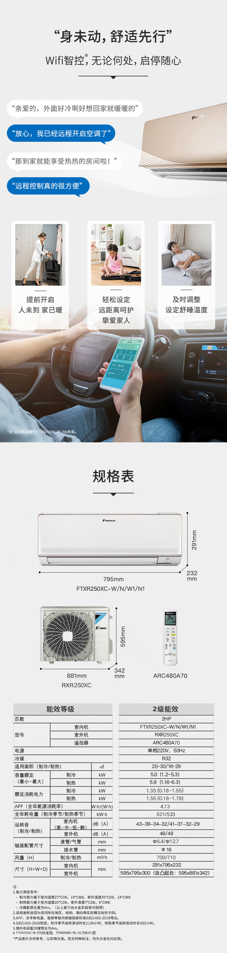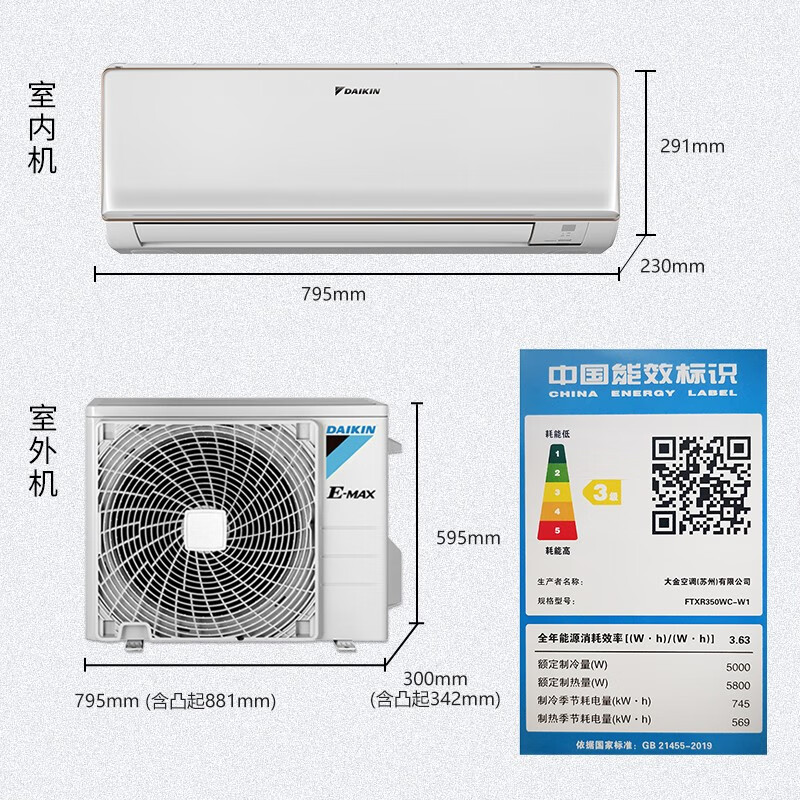 大金空调(DAIKIN)新国标 E-MAX 8系列 变频康达 智能控制冷暖自清洁壁挂以旧换新 2匹 三级能效