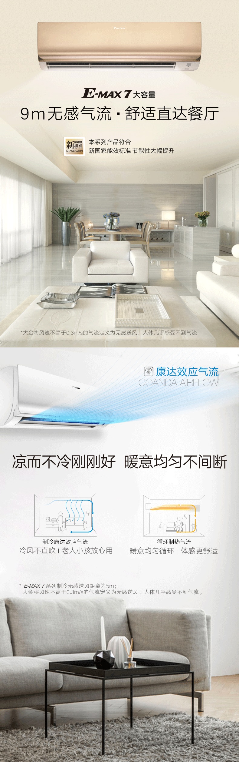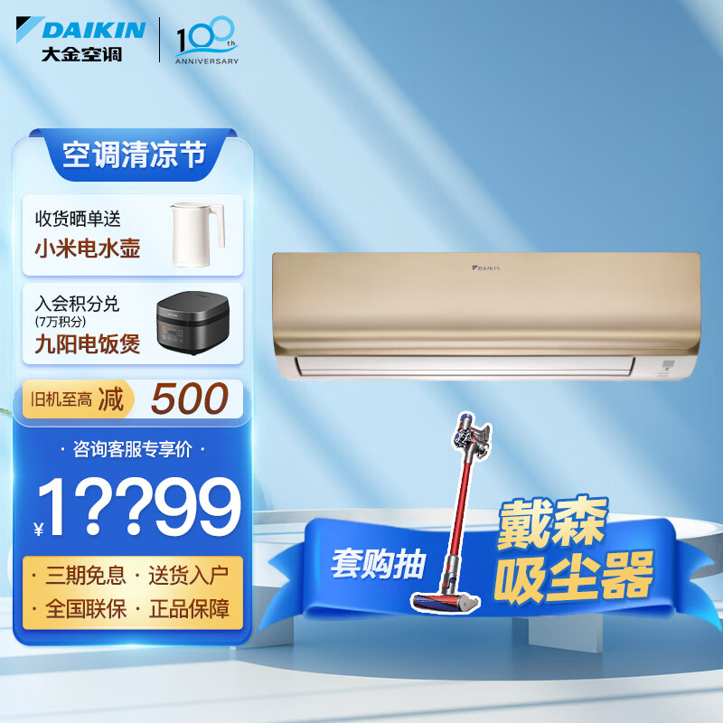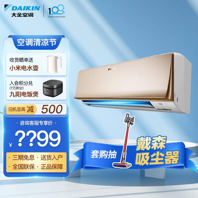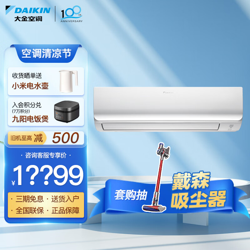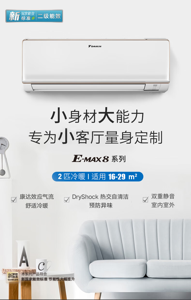 大金空调(DAIKIN) 变频 康达气流 冷暖智控 家用室内小客厅挂机 以旧换新【华南】 2匹 二级能效