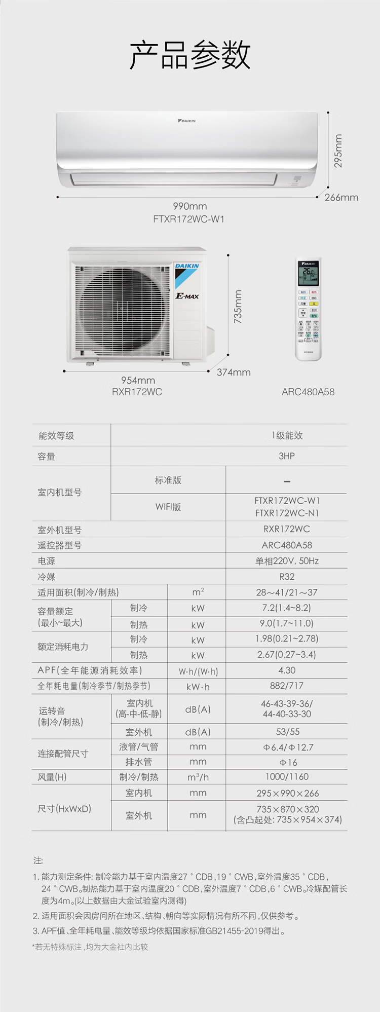 3匹 一级能效 FTXR172WC-W1白色