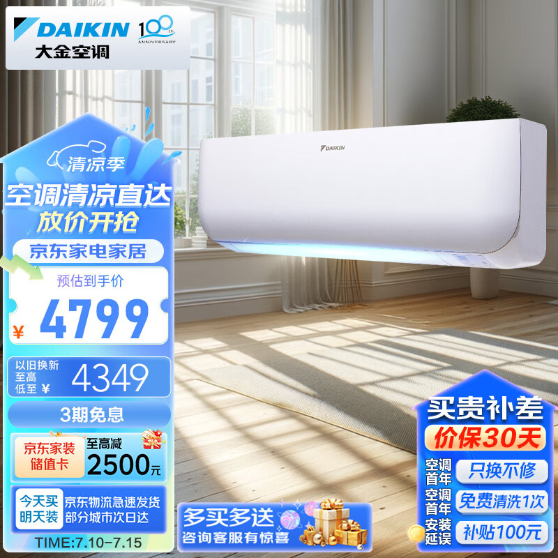大金空调 10-16㎡适用 新三级能效 大1匹 变频 冷暖 家用 壁挂式 以旧换新