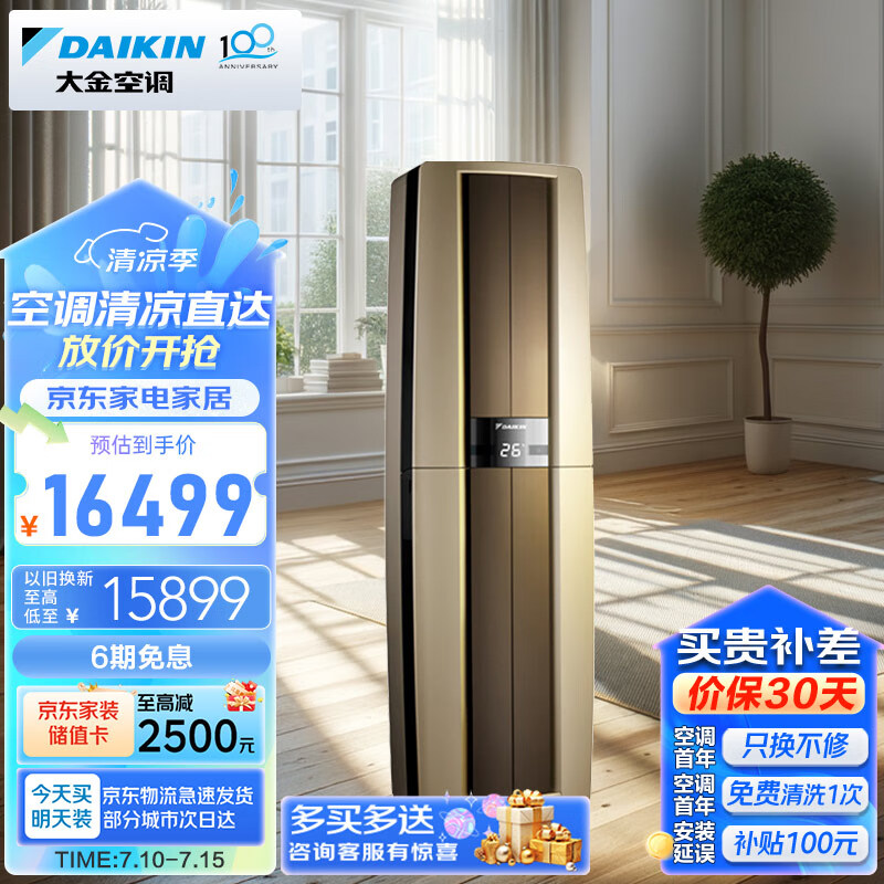 大金空调 29-49㎡适用 新二级能效 3匹 变频 冷暖 家用客厅 立式柜机 以旧换新