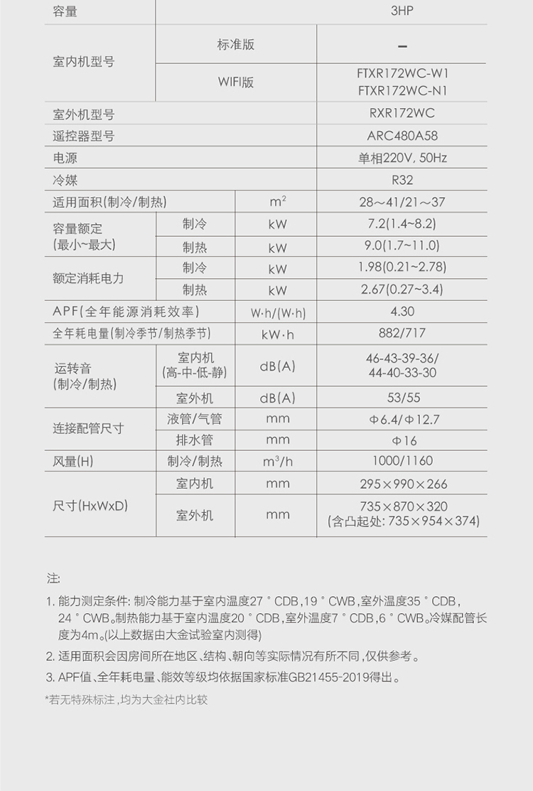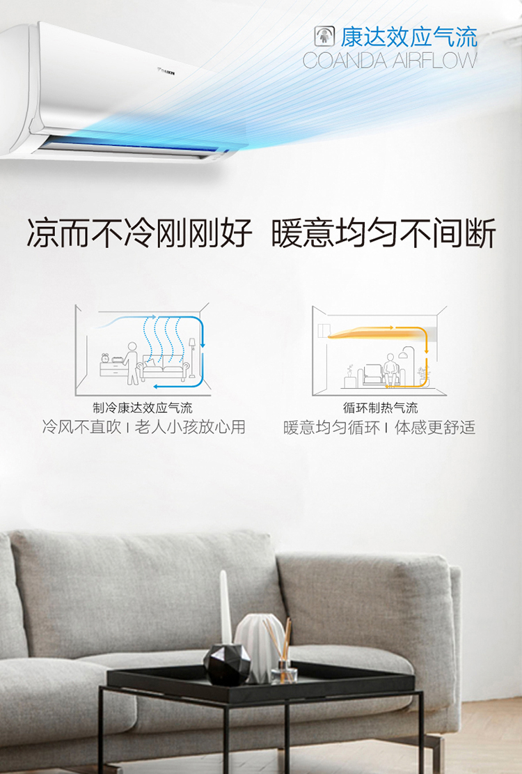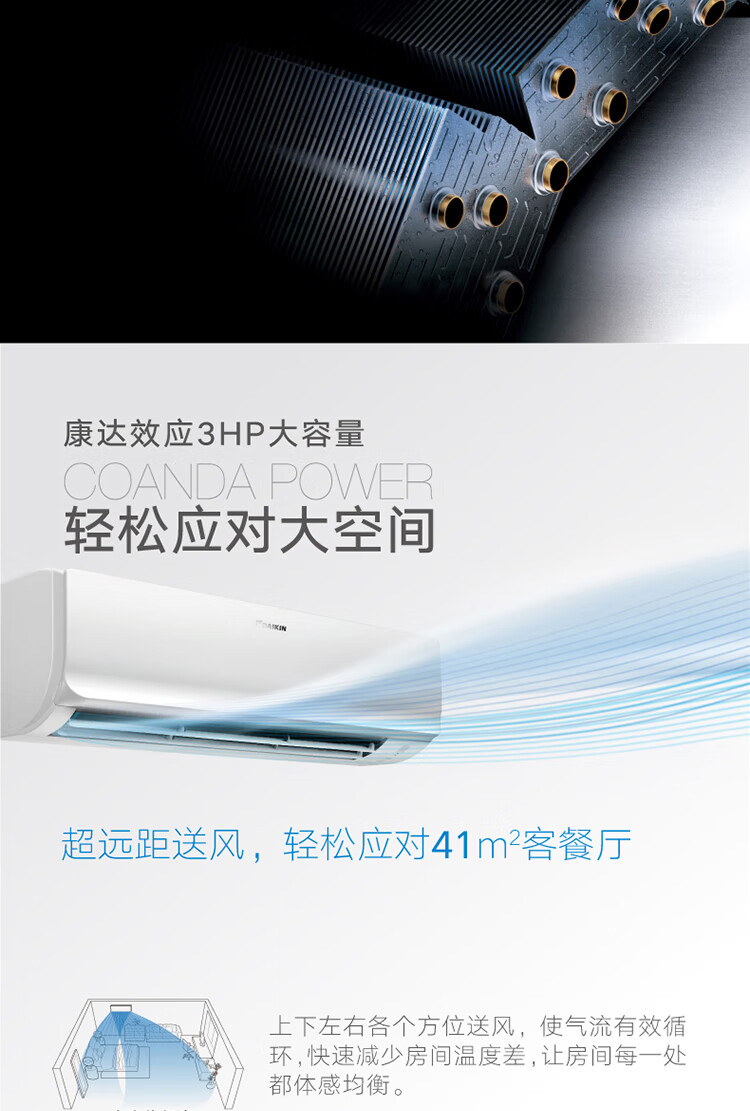 大金(DAIKIN) 28-41㎡适用 新1级能效3匹变频冷暖空调挂机 WiFi康达气流以旧换新