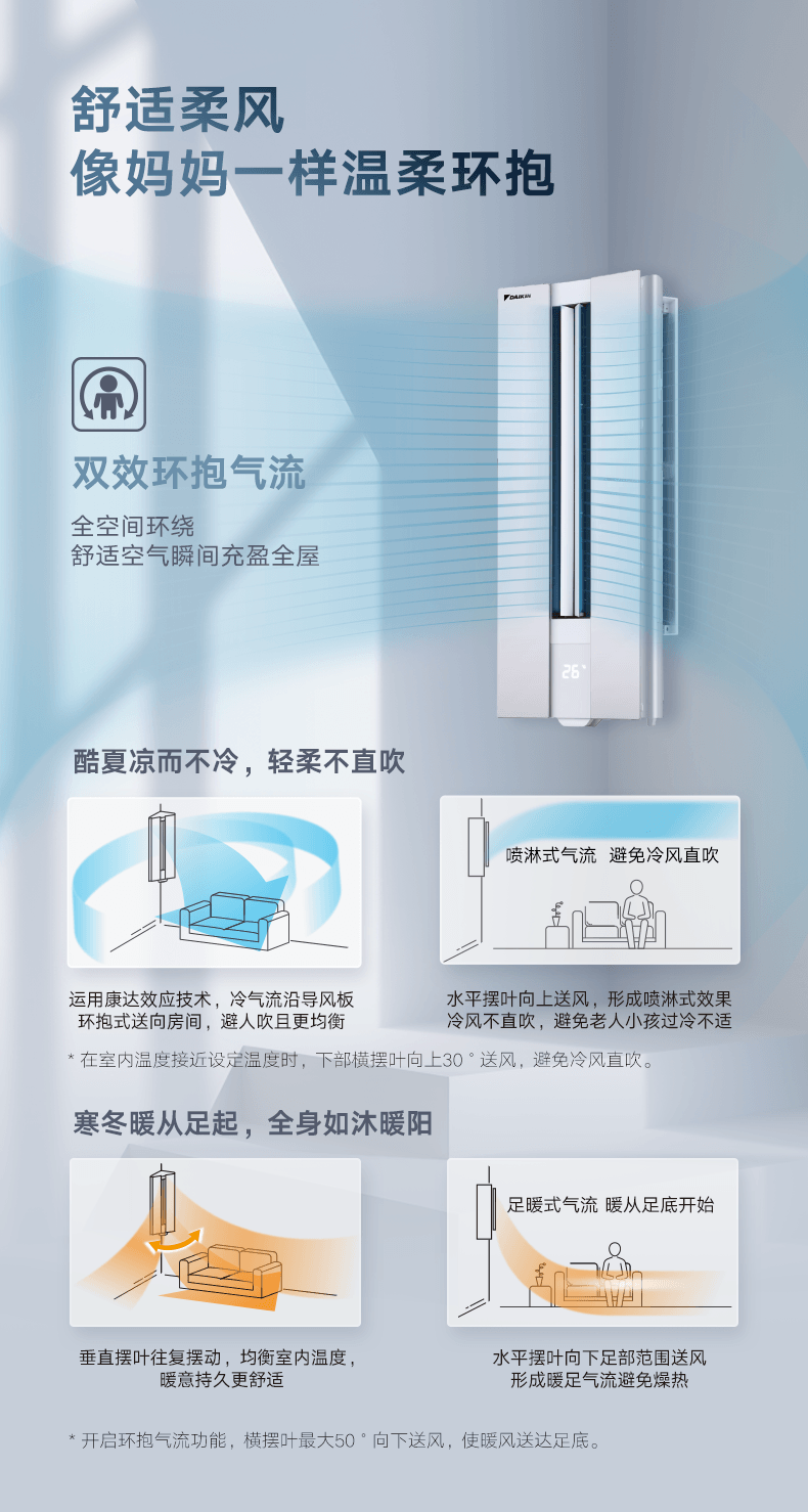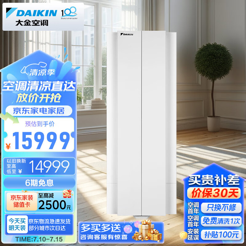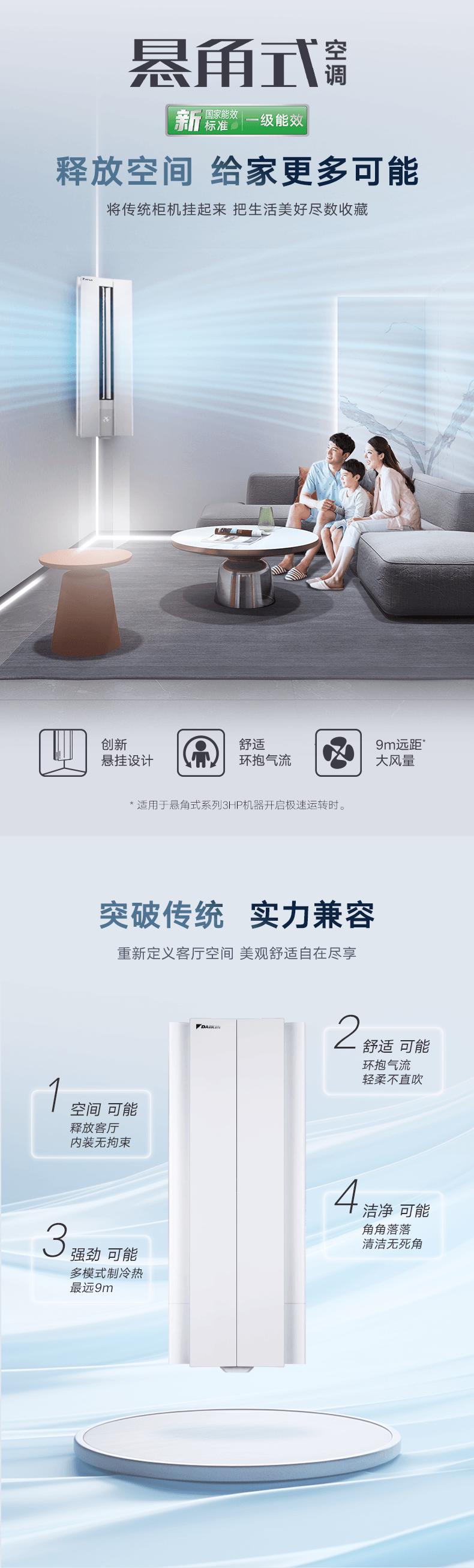 大金空调 28-42㎡适用 新一级能效 3匹 变频 冷暖 家用客厅 悬角式柜机 以旧换新
