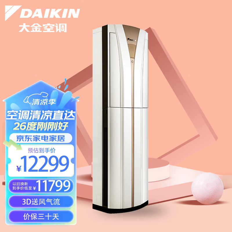 大金(DAIKIN) 29-43㎡适用 新3级能效3匹变频冷暖空调柜机 送风冷暖均匀以旧换新