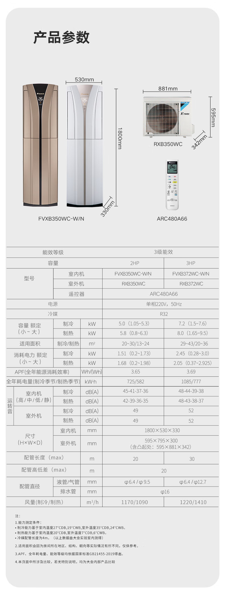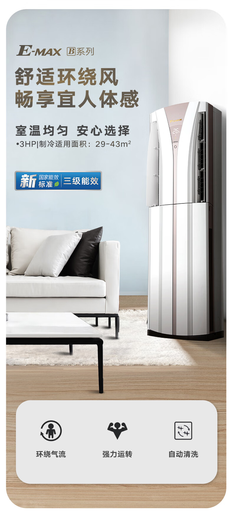 大金空调 20-43㎡适用 新三级能效 3匹 变频冷暖 家用客厅 立式柜机 以旧换新
