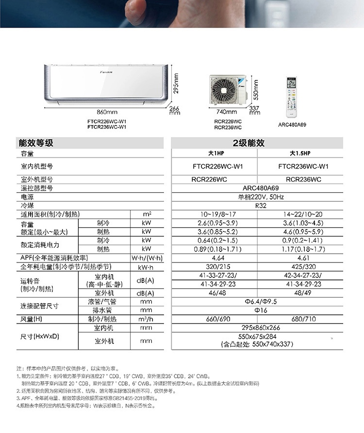 大金(DAIKIN) 14-22㎡适用 新2级能效1.5匹变频冷暖空调挂机 智能清扫WiFi以旧换新 FTCR236WC-W1(白)