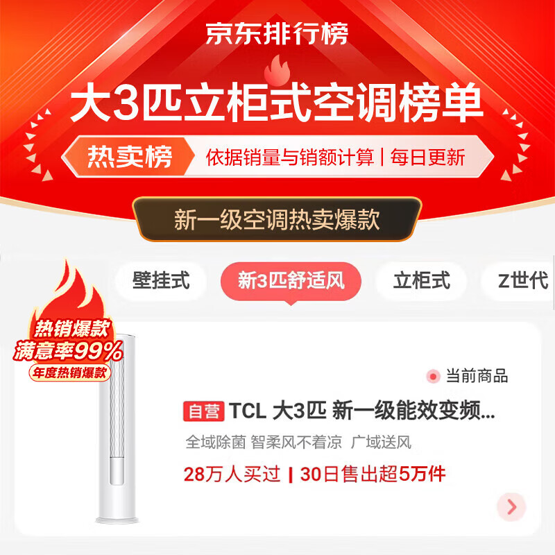 3匹 一级能效 ⭐爆款 智净风除菌