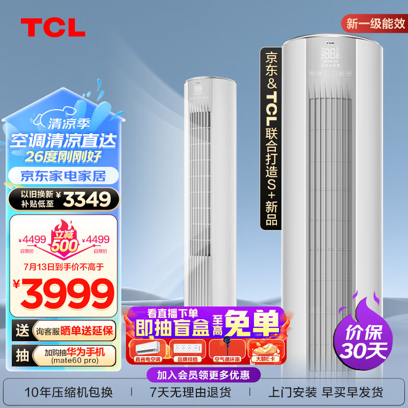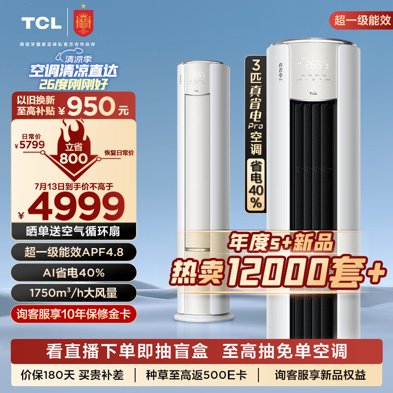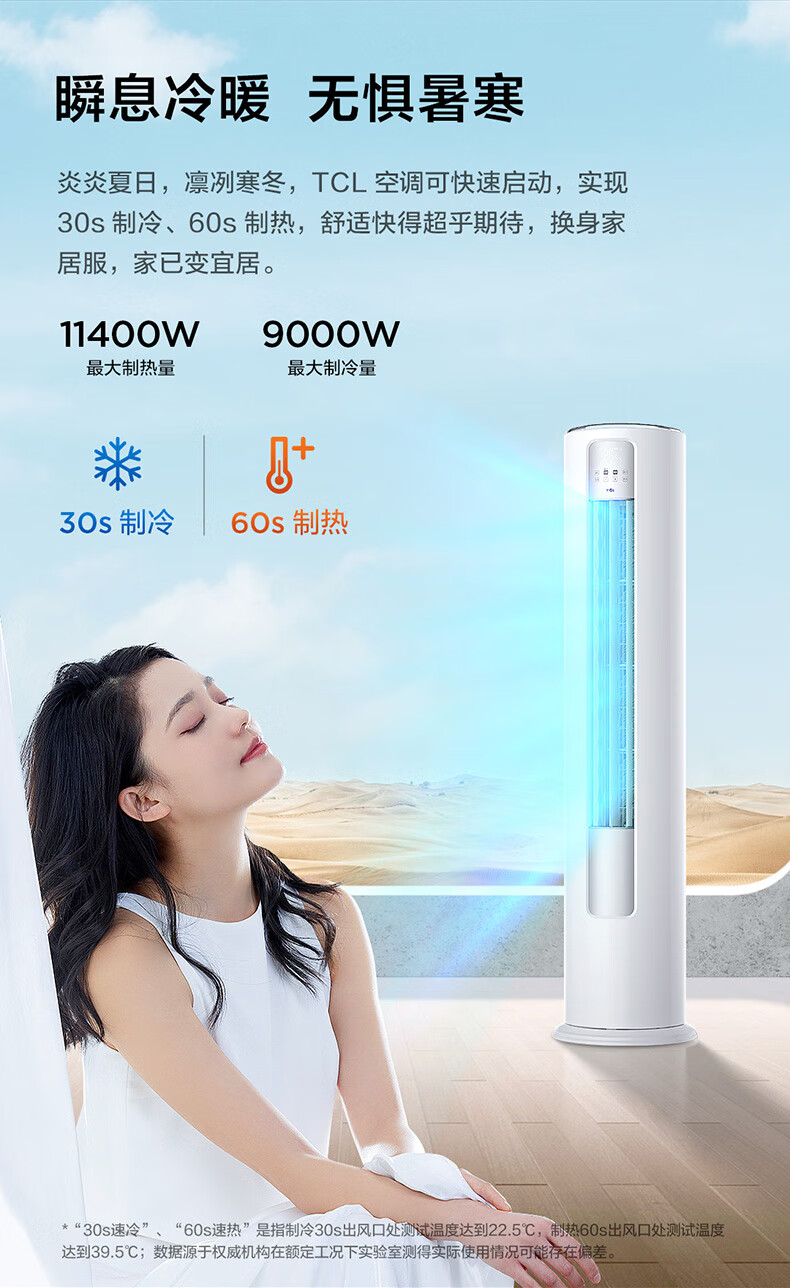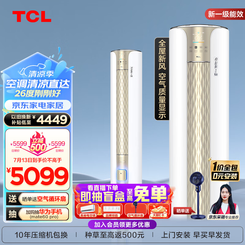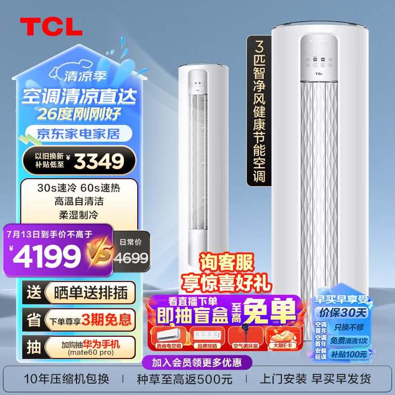 TCL空调 3匹 新一级能效 变频冷暖 智能 智净风