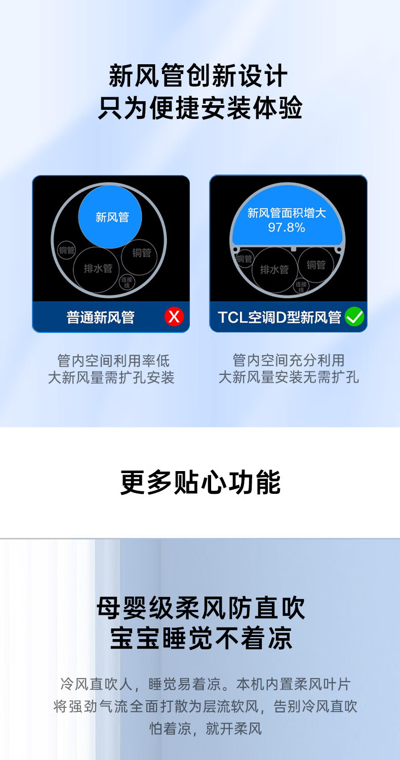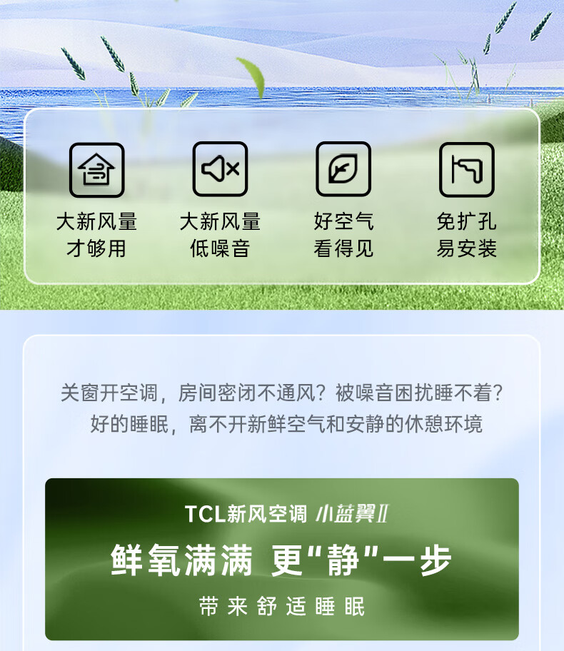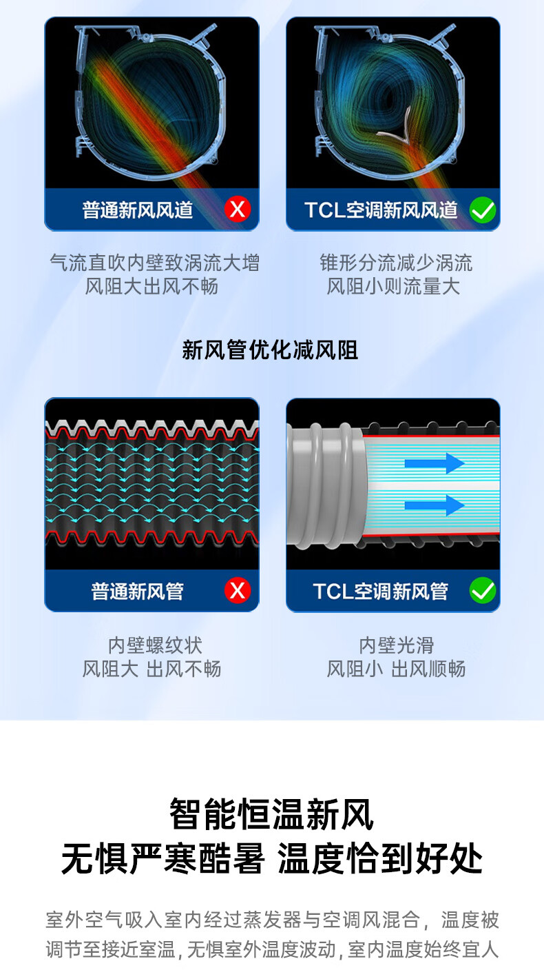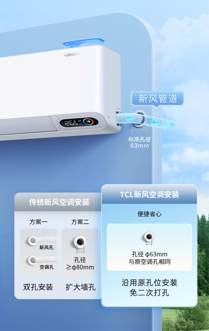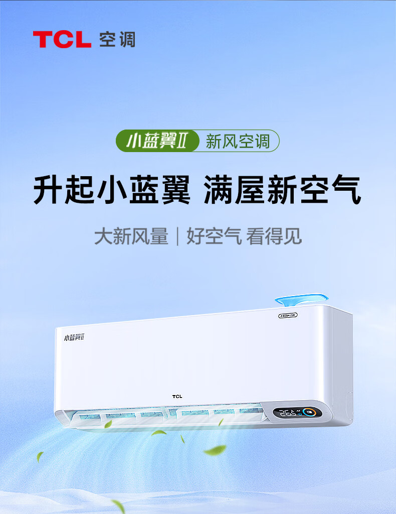 TCL新风空调1.5匹新一级 变频冷暖60m³/h大新风量小蓝翼Ⅱ卧室挂机