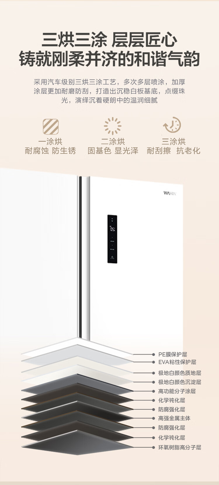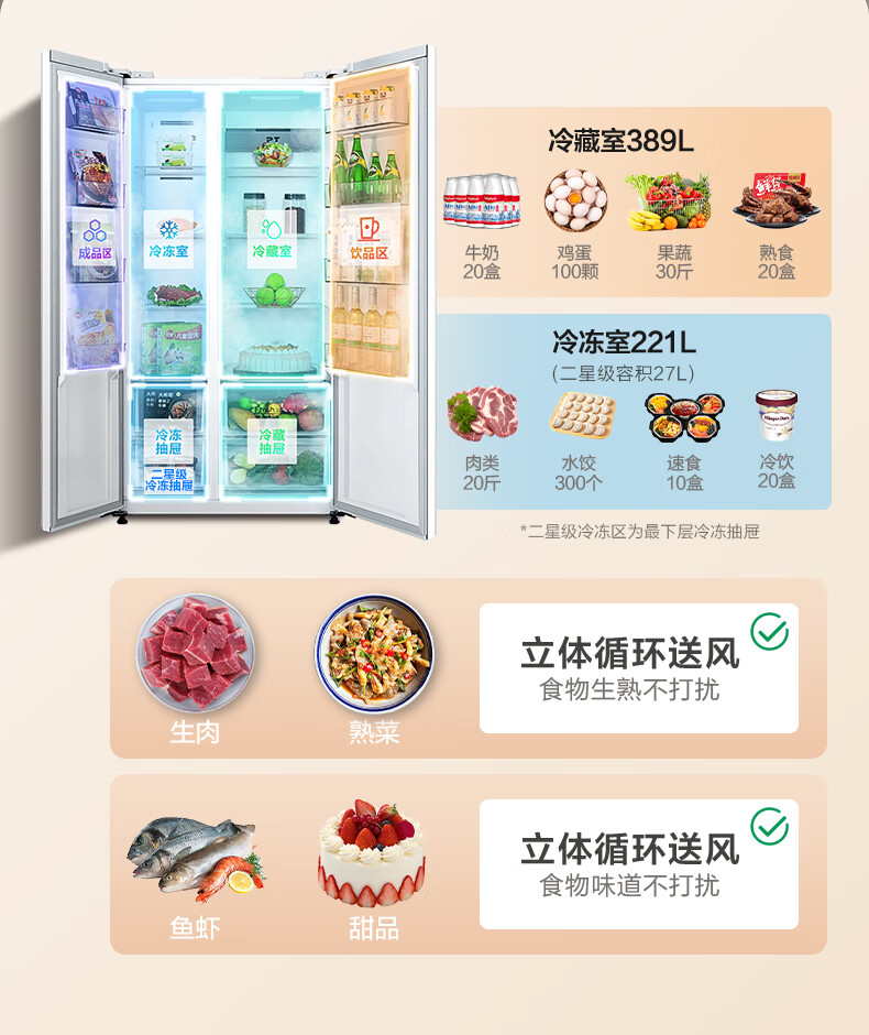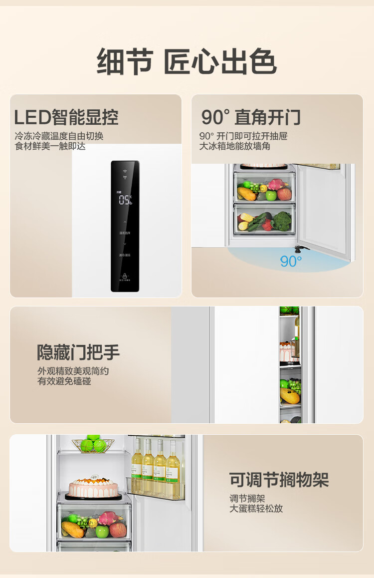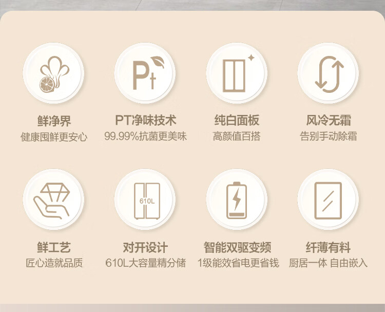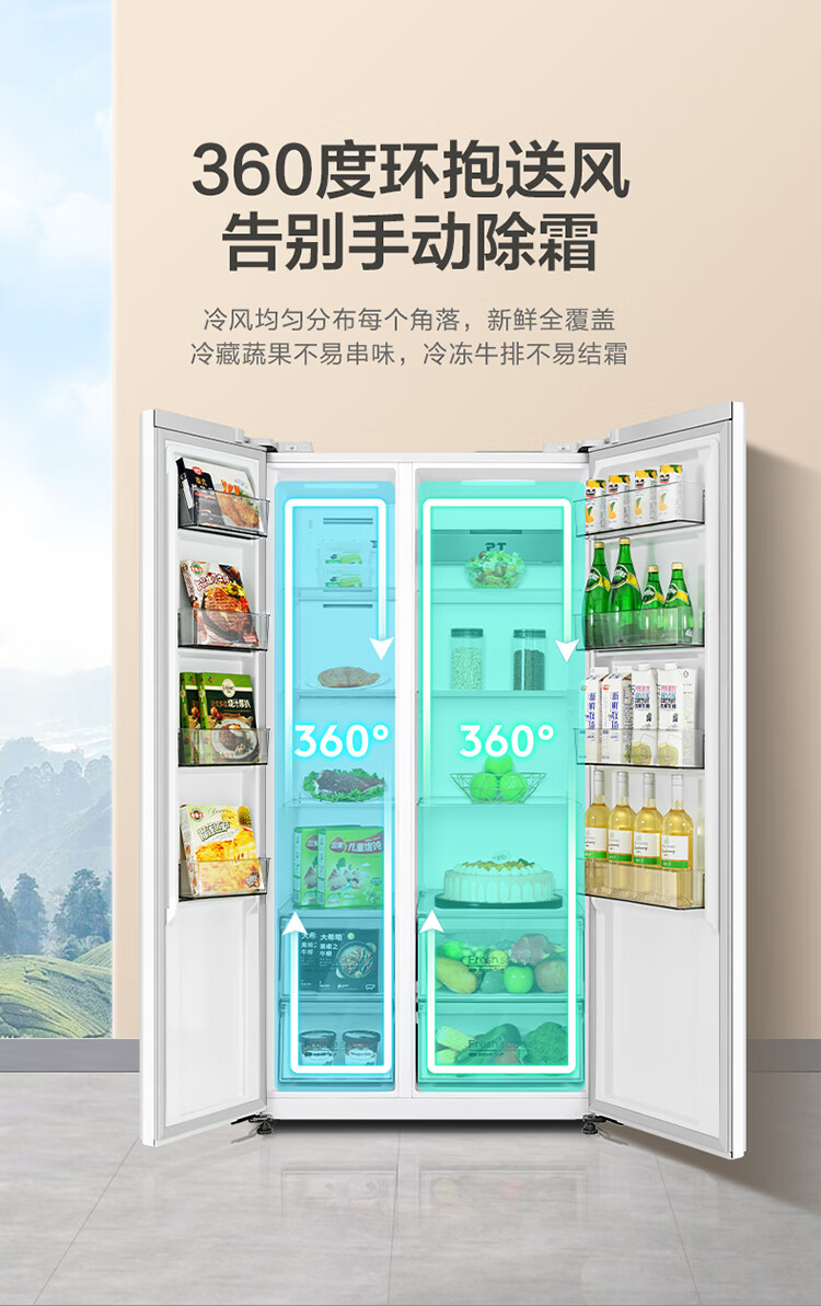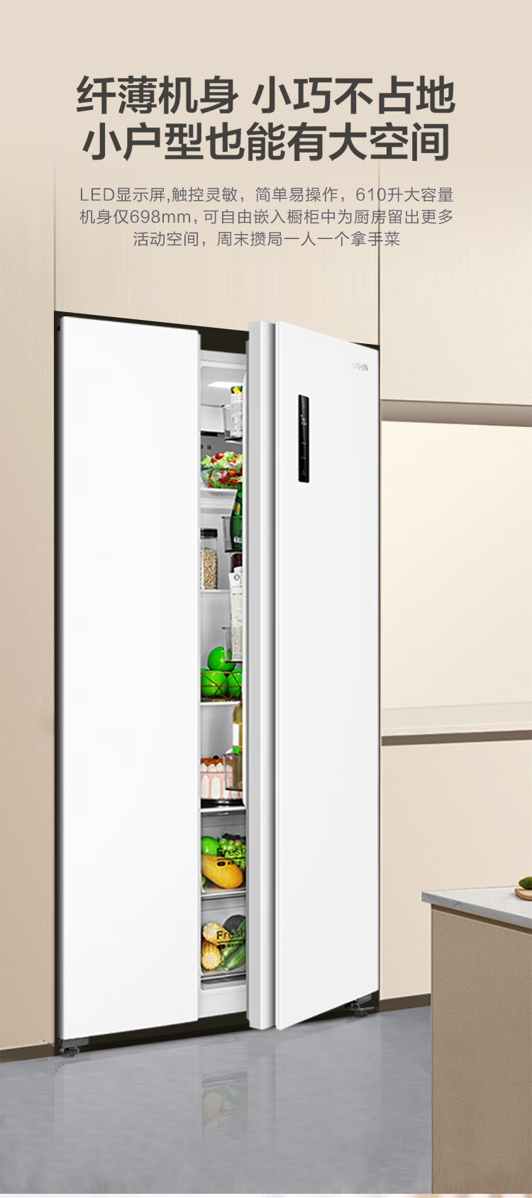 华凌美的出品 610升超大容量对开门双开门一级能效风冷无霜WiFi智能家用电冰箱HR-610WKPZH1白色超薄 610L