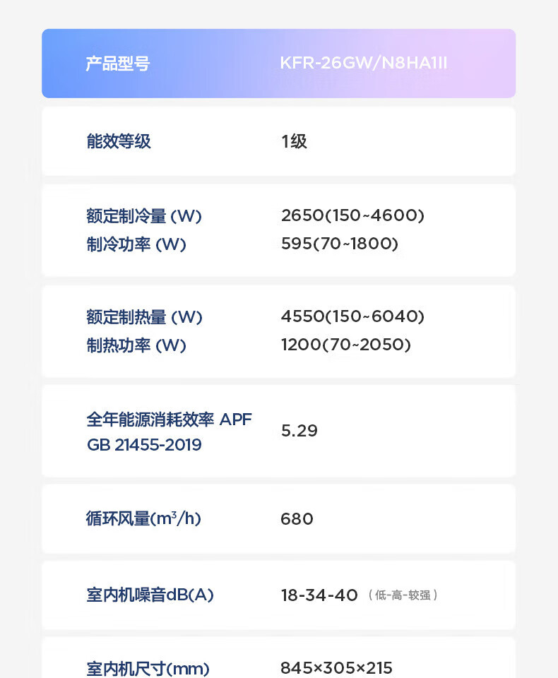 【小空间卧室】26N8HA3Ⅱ 三级能效