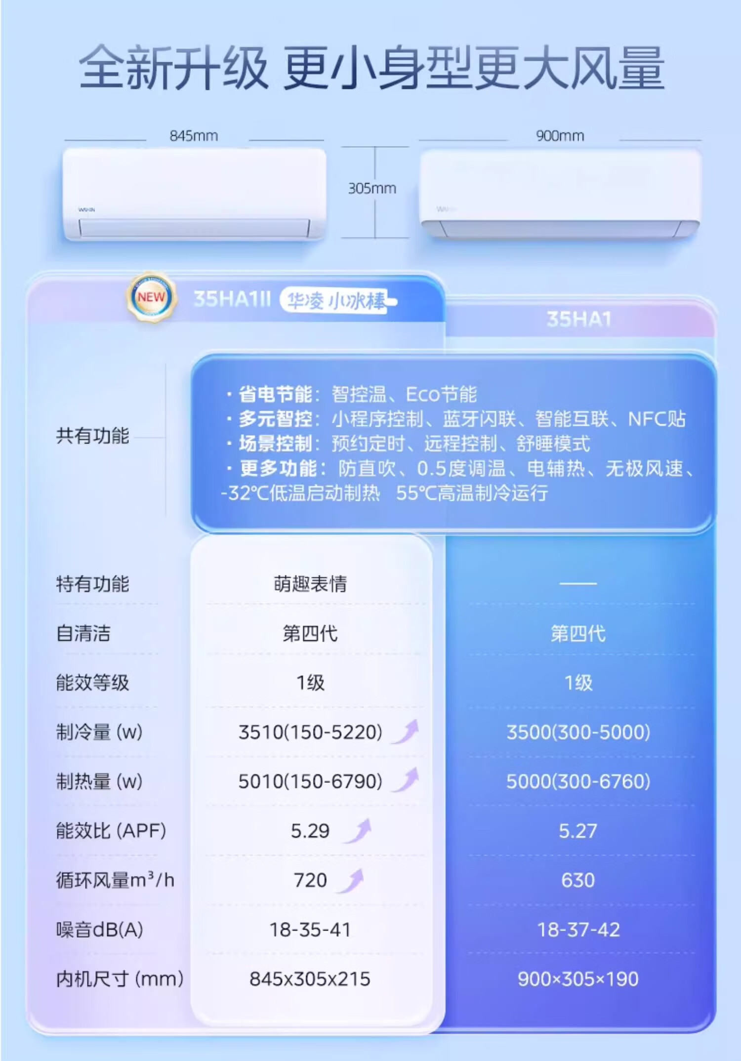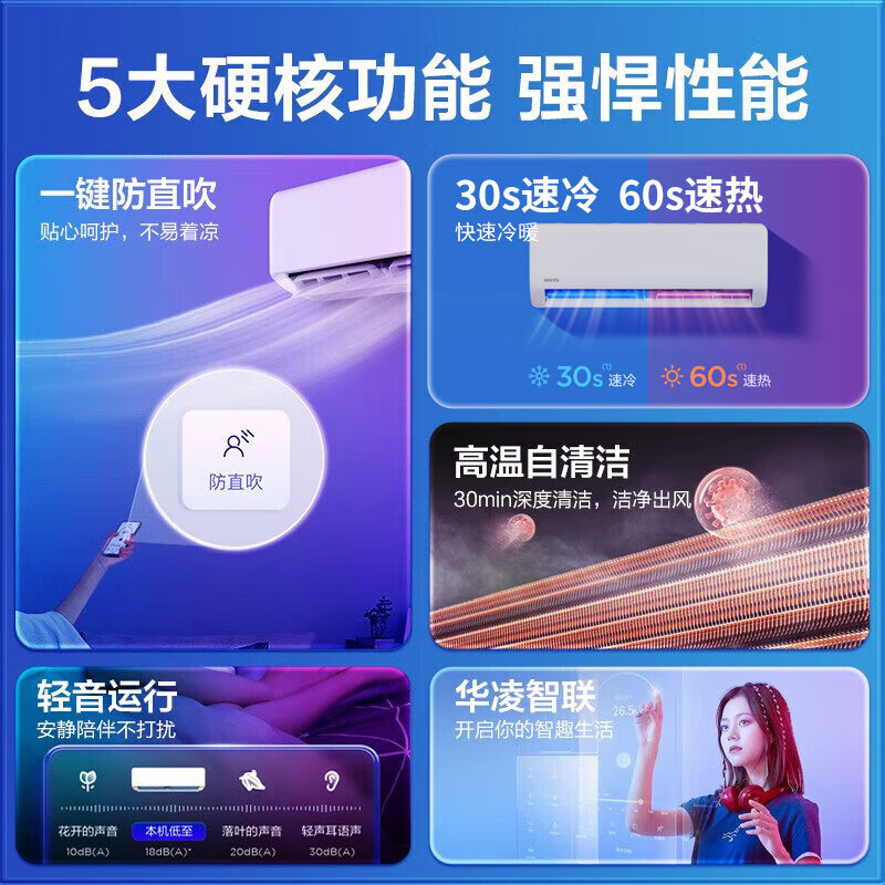 华凌空调挂机 小冰棒 大1.5匹 大1匹 新一级能效 变频冷暖 壁挂式节能空调 智能家电 以旧换新 【卧室出租房】35N8HA3Ⅱ